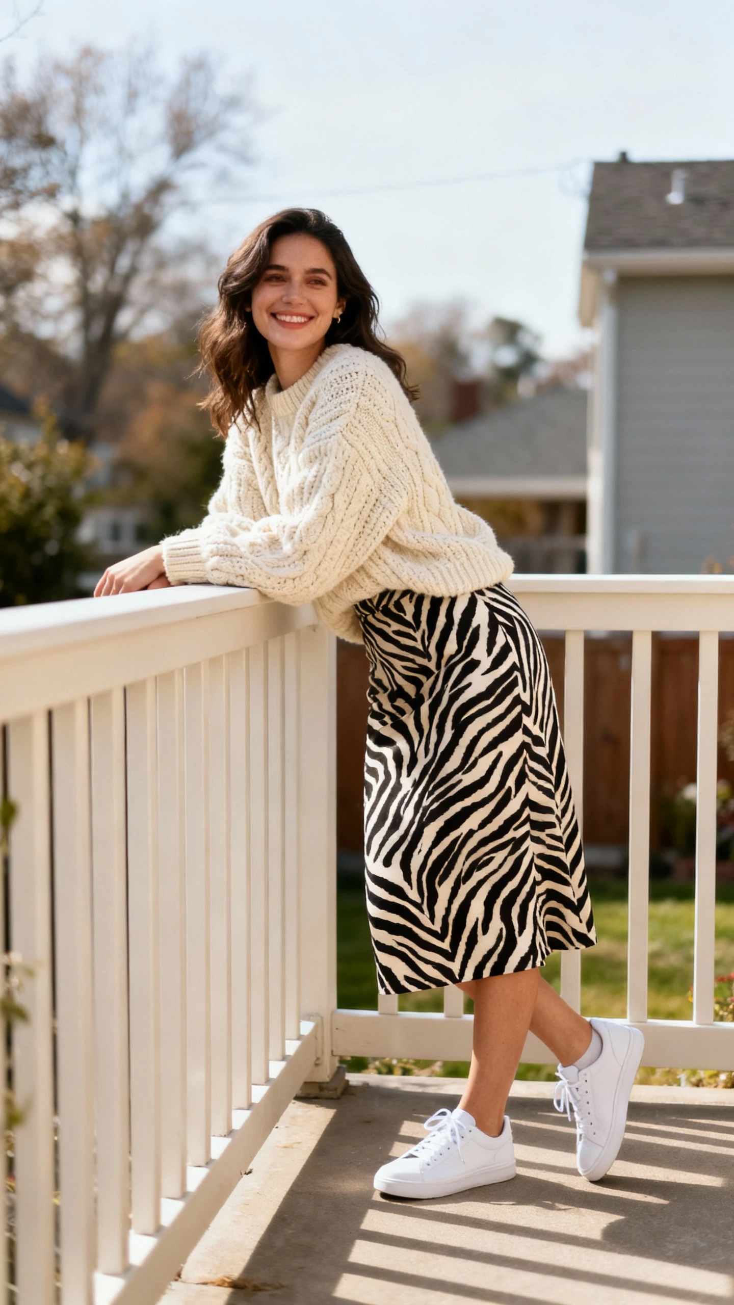 3. Zebra Skirt + Chunky Knit That Says “Effortless But Intentional”