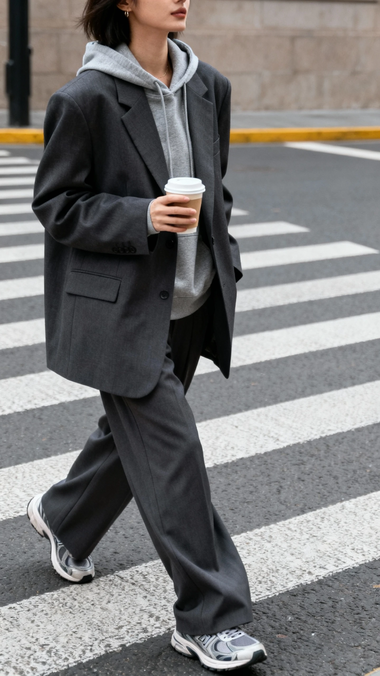 2. The Sporty Suit Flip: Blazer + Hoodie Energy
