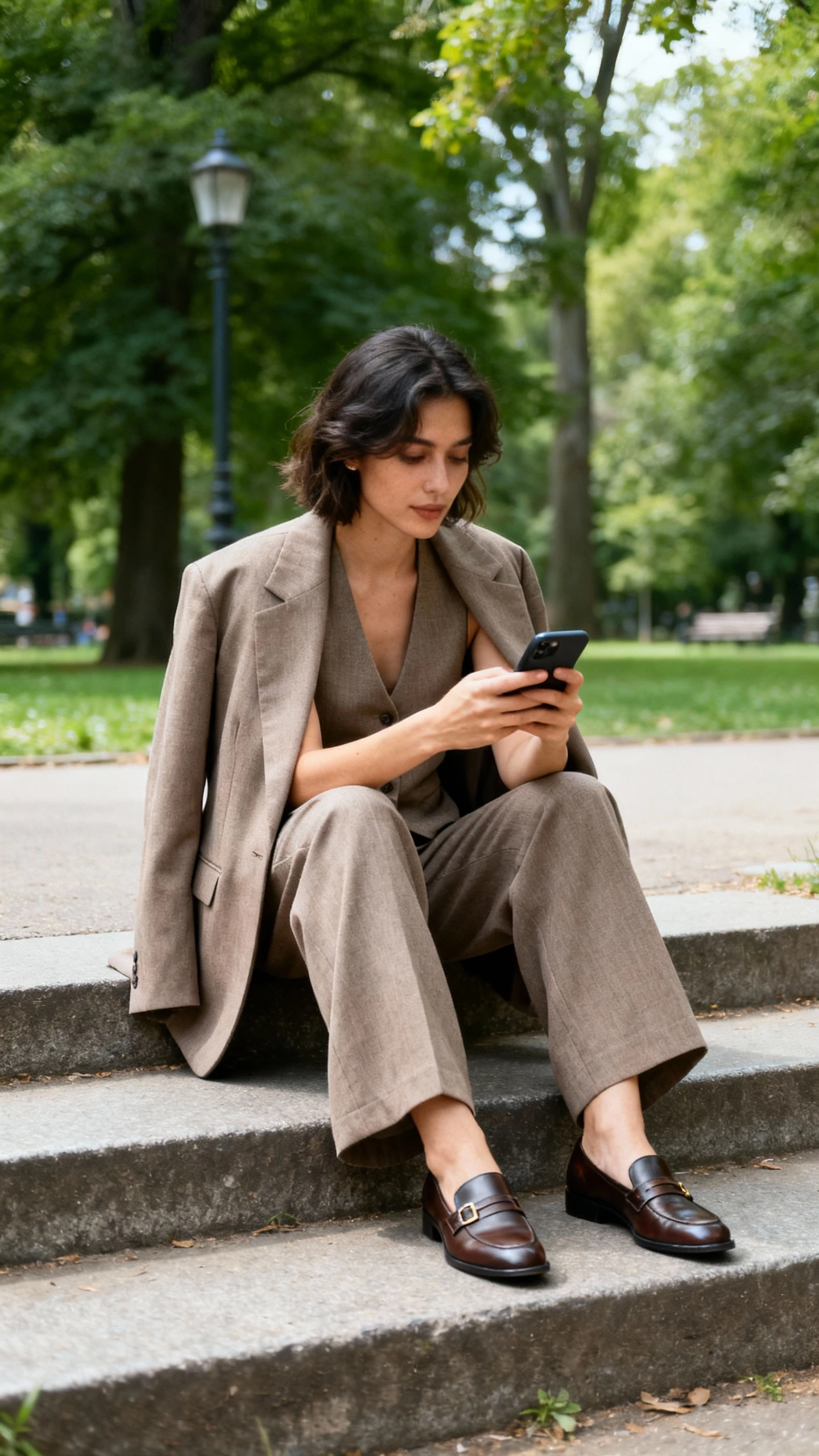 The three-piece suit is back, and the baggy version is extremely modern. Wearing the vest under an oversized blazer adds structure without stiffness; wearing it alone doubles as a top. It’s a shapeshifter look that can read vintage or ultra-contemporary, depending on styling.