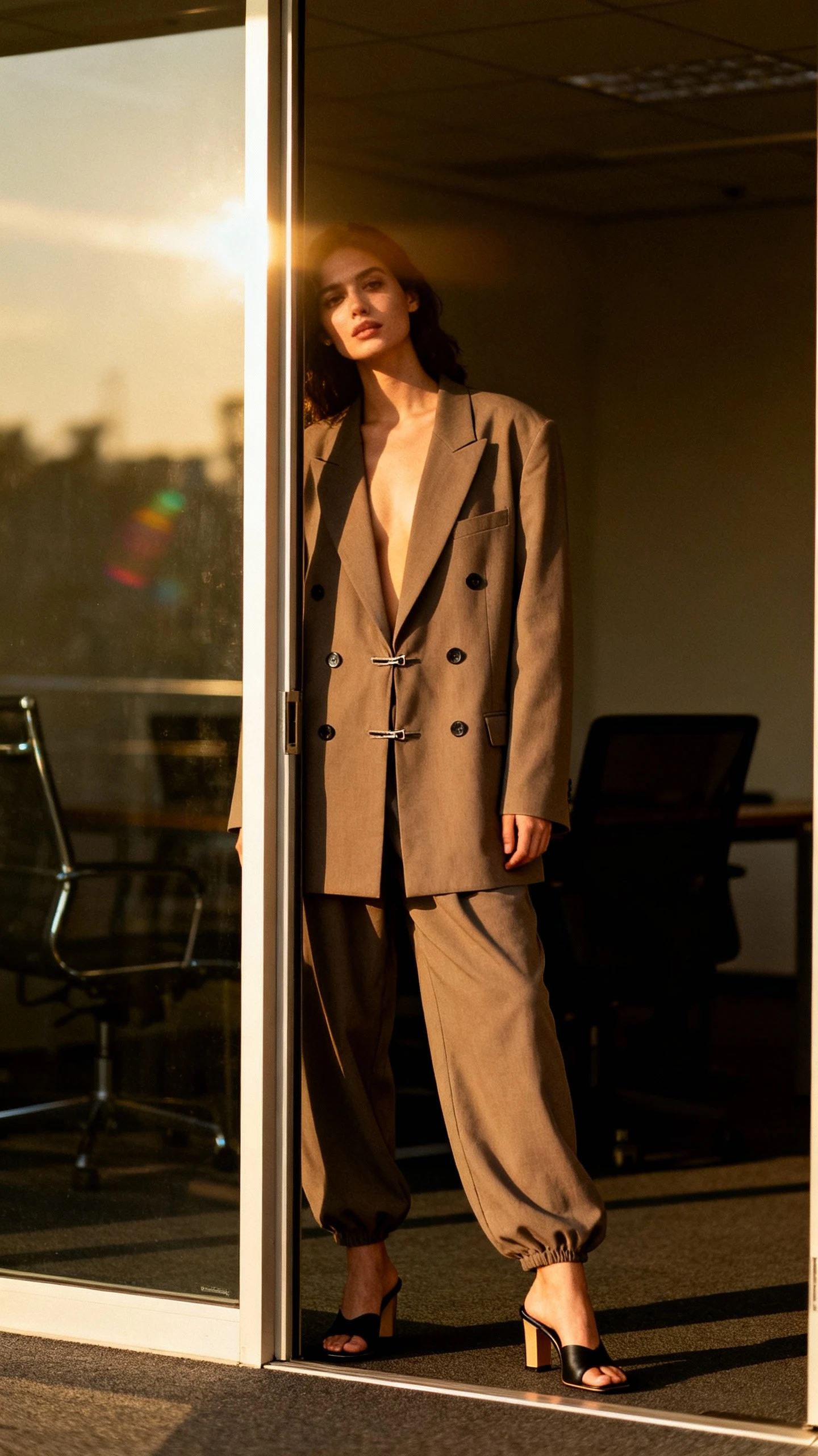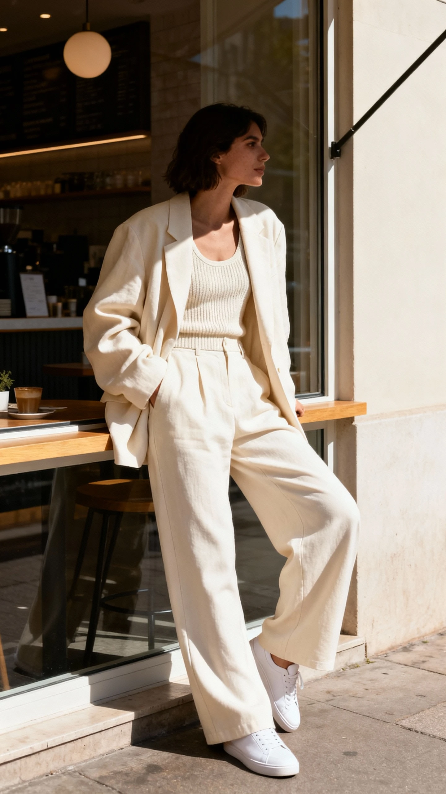 Nothing screams quiet luxury like a full cream suit with a voluminous fit. It’s clean, it’s confident, and it looks extra expensive (even if it isn’t). Bonus: the single-color palette pulls you taller and longer—like instant tailoring magic.