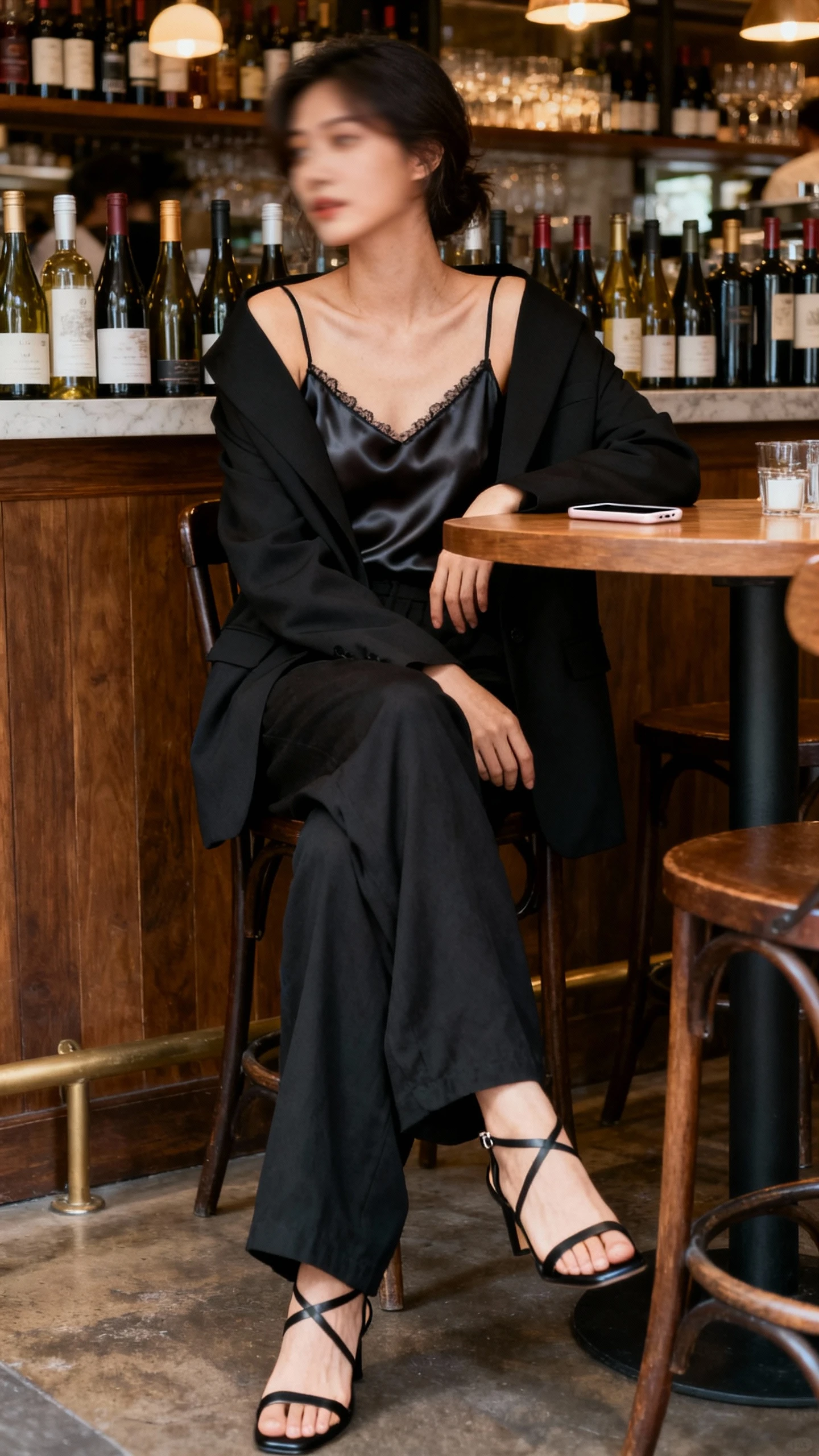 Perfect for night events, gallery openings, or a dressy dinner. For daytime, swap the heels for loafers and add a sheer tee under the blazer. A sleek bun or center-parted hair will sharpen the silhouette and add that editorial polish.