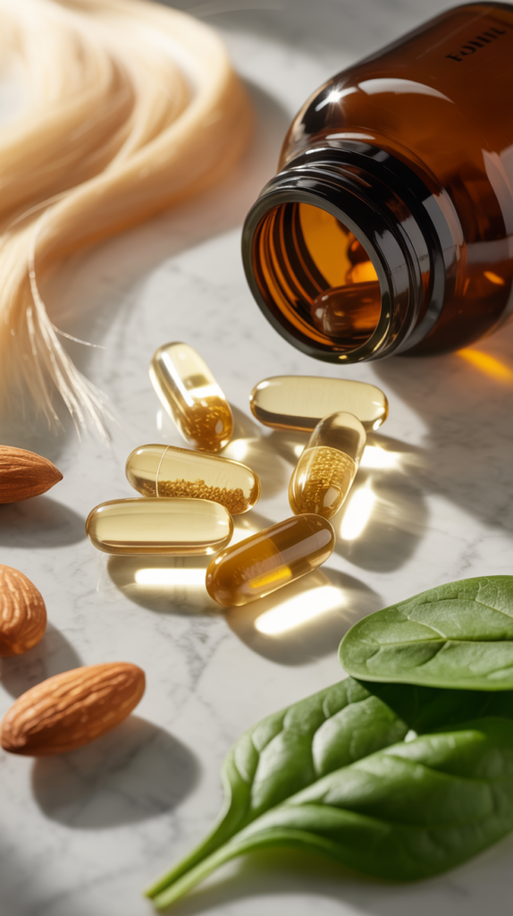 A quality multi ensures the basics. Add iron bisglycinate only if labs show low ferritin (aim for 40–70 ng/mL for hair goals, per many dermatologists).