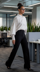 • Or wide-leg pants for that effortless “creative director” vibe