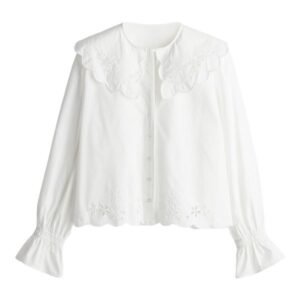 Whether it’s an exaggerated Peter Pan collar, contrast trim, or a delicate lace edge, these details pull focus in the best way possible.