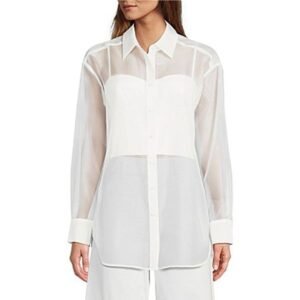 sheer organza blouse layered over a silk camisole is chef’s kiss for 2025 office chic. It’s giving “I’m elegant, but I also know what TikTok trends are.”