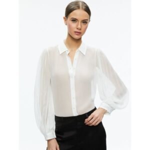 Sheer blouses are peak office glam without overdoing it. Layer over a cami or bralette (classy, not scandalous), and you’ve got a look that’s airy and professional.