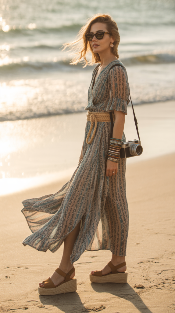 3. Flirty Wrap Dress With Espadrilles For Carefree Market Strolls