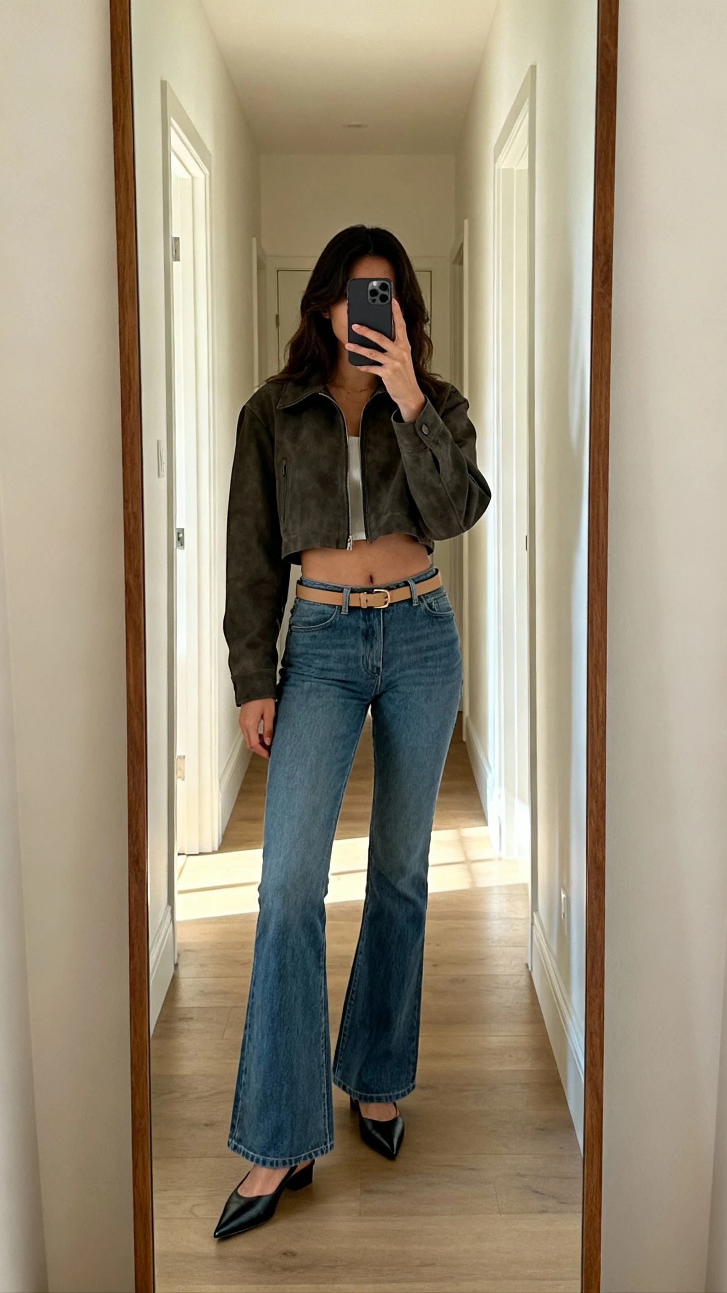 6. Cropped Jacket + Kick-Flare Jeans With A Skinny Belt