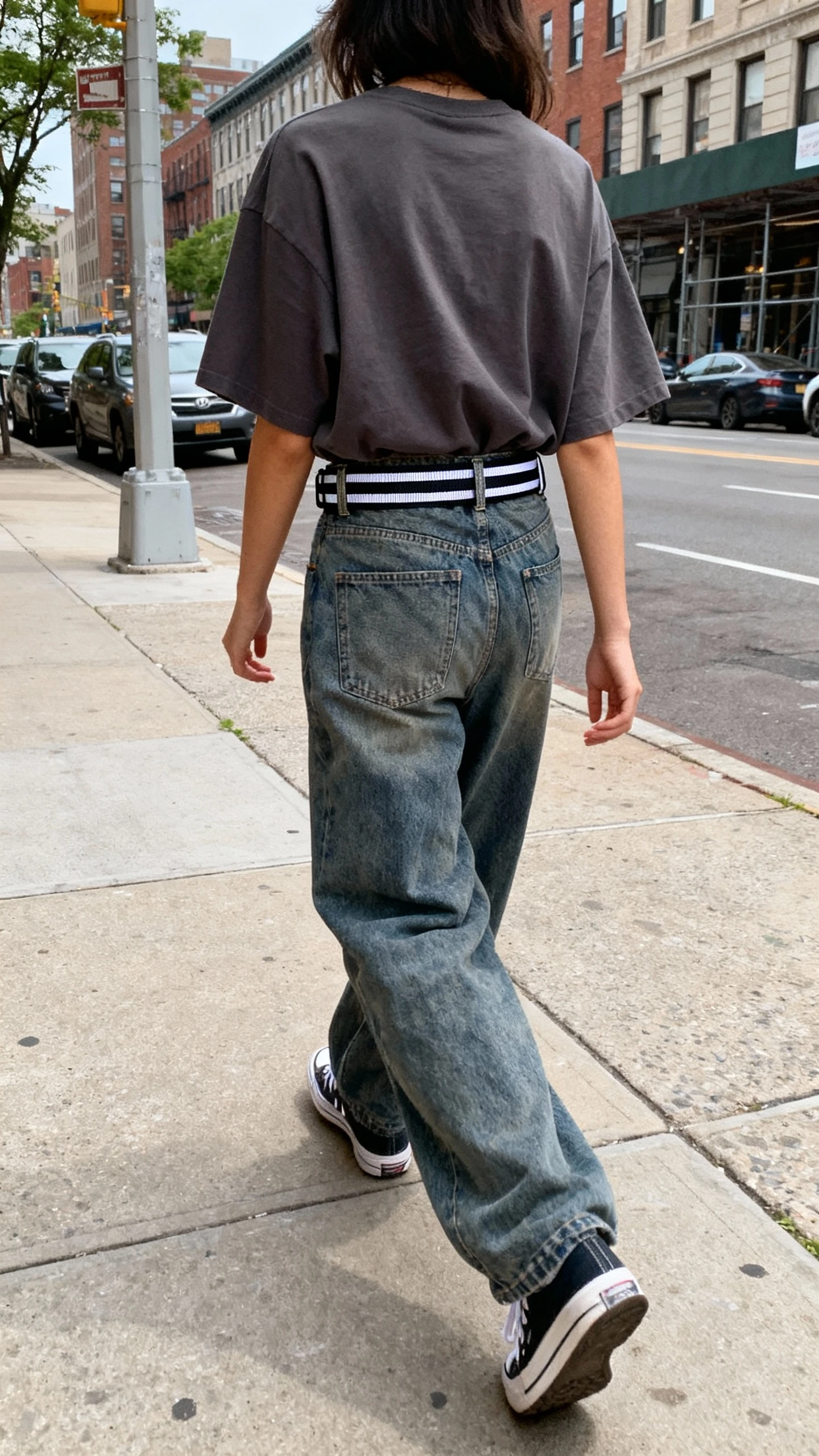 7. Athleisure Remix: Boxy Tee, Baggy Jeans, And A Sporty Belt