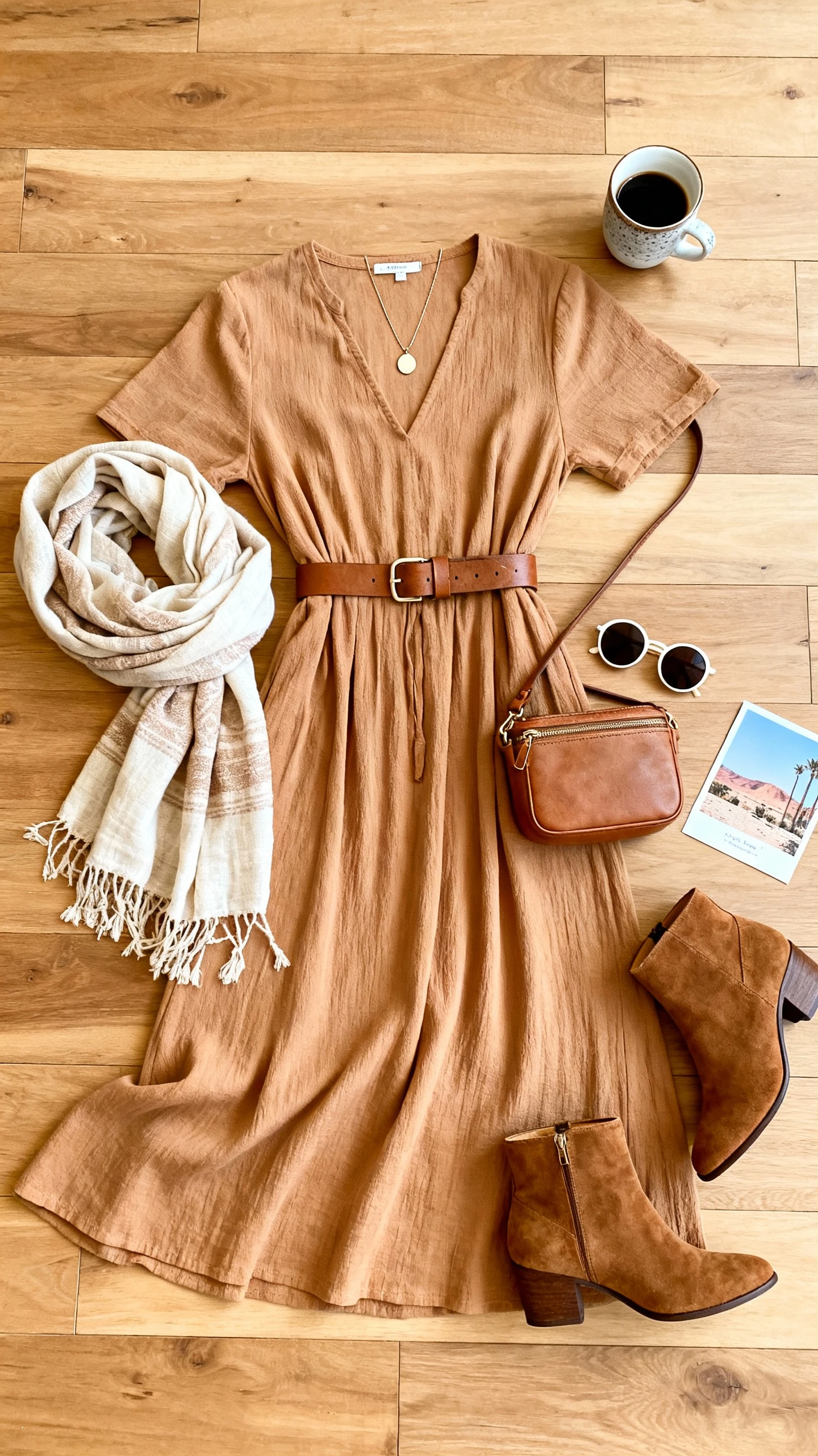 9. Desert Dress And Scarf Combo With A Belt Bag