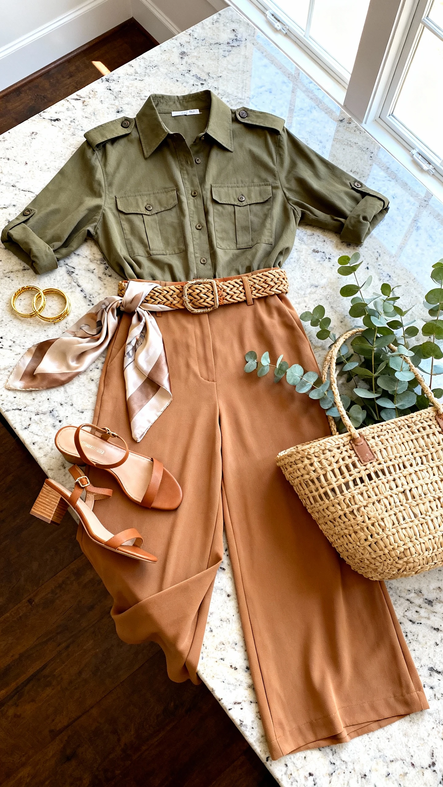 Perfect for a safari lodge dinner, vineyard tour, or city date night. Swap the tank for a lightweight button-up if you want more coverage, and add a silk scarf hair tie for a chic nod to retro explorer style.