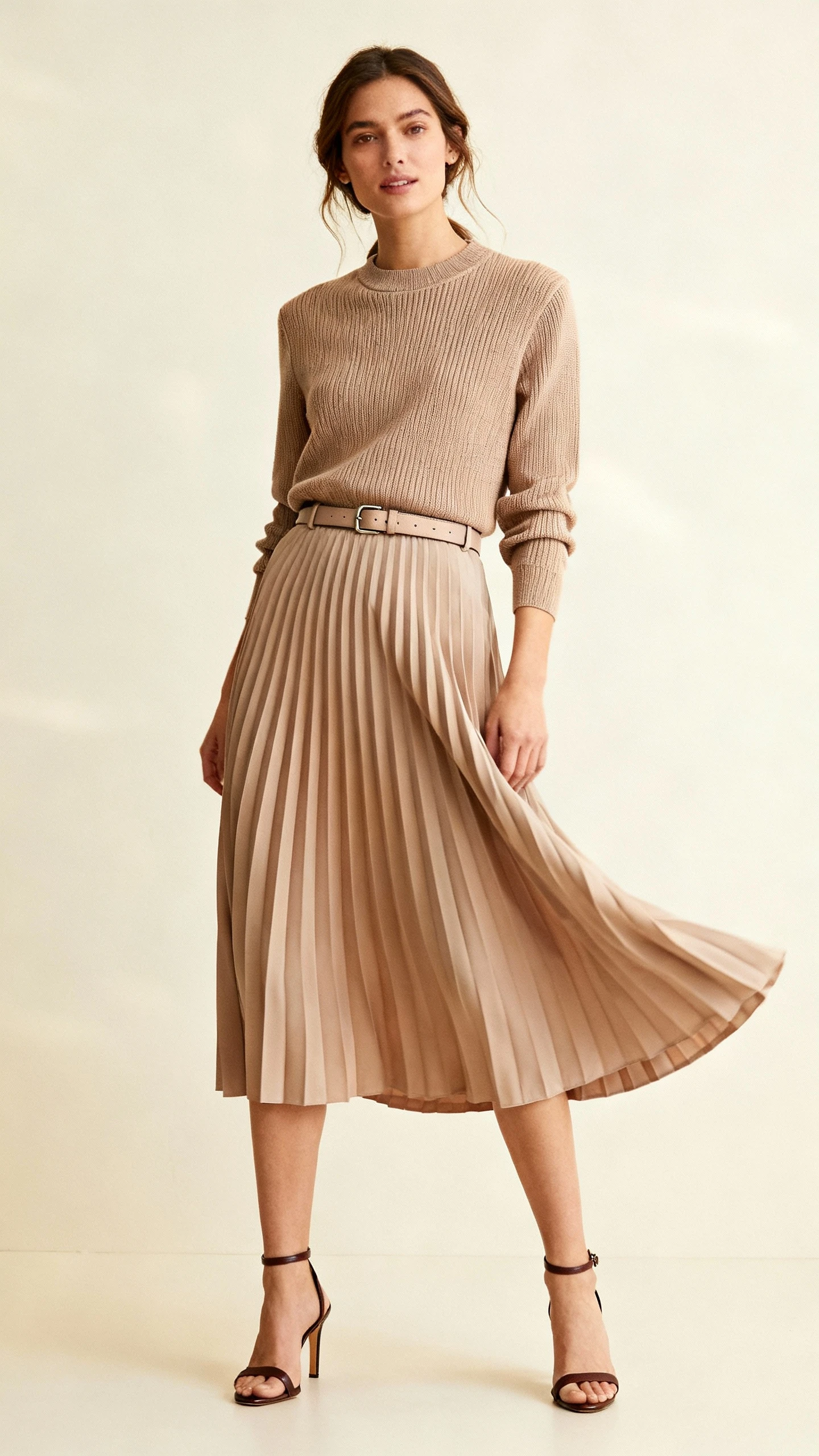 9. The Pleated Midi Skirt + Tailored Knit Combo