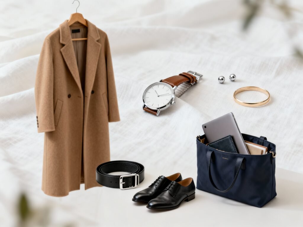 - Bags: structured totes or satchels that fit a laptop and folio.