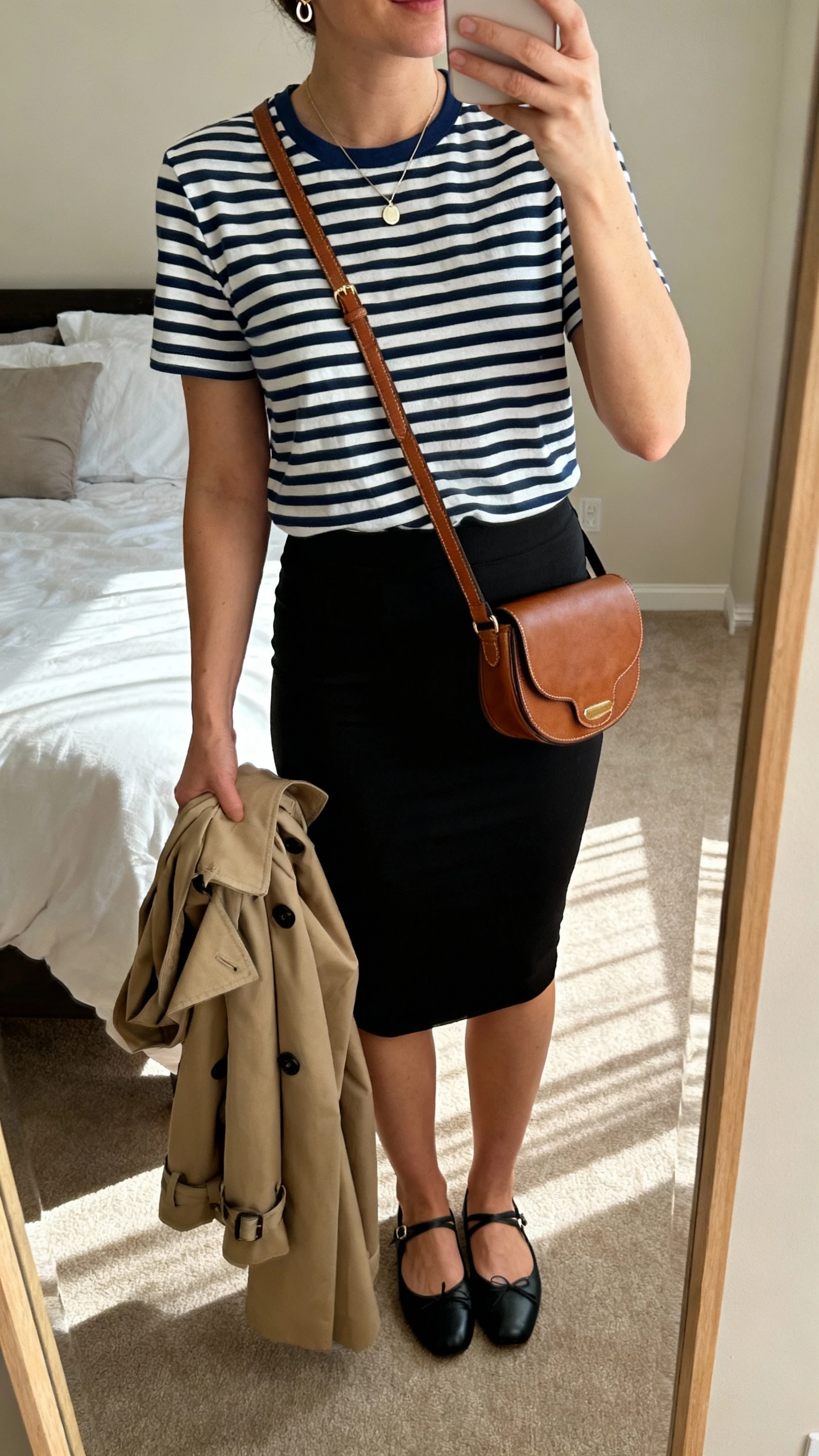 - Keep the palette neutral and let the coat be the hero; add stripes for a Parisian touch.