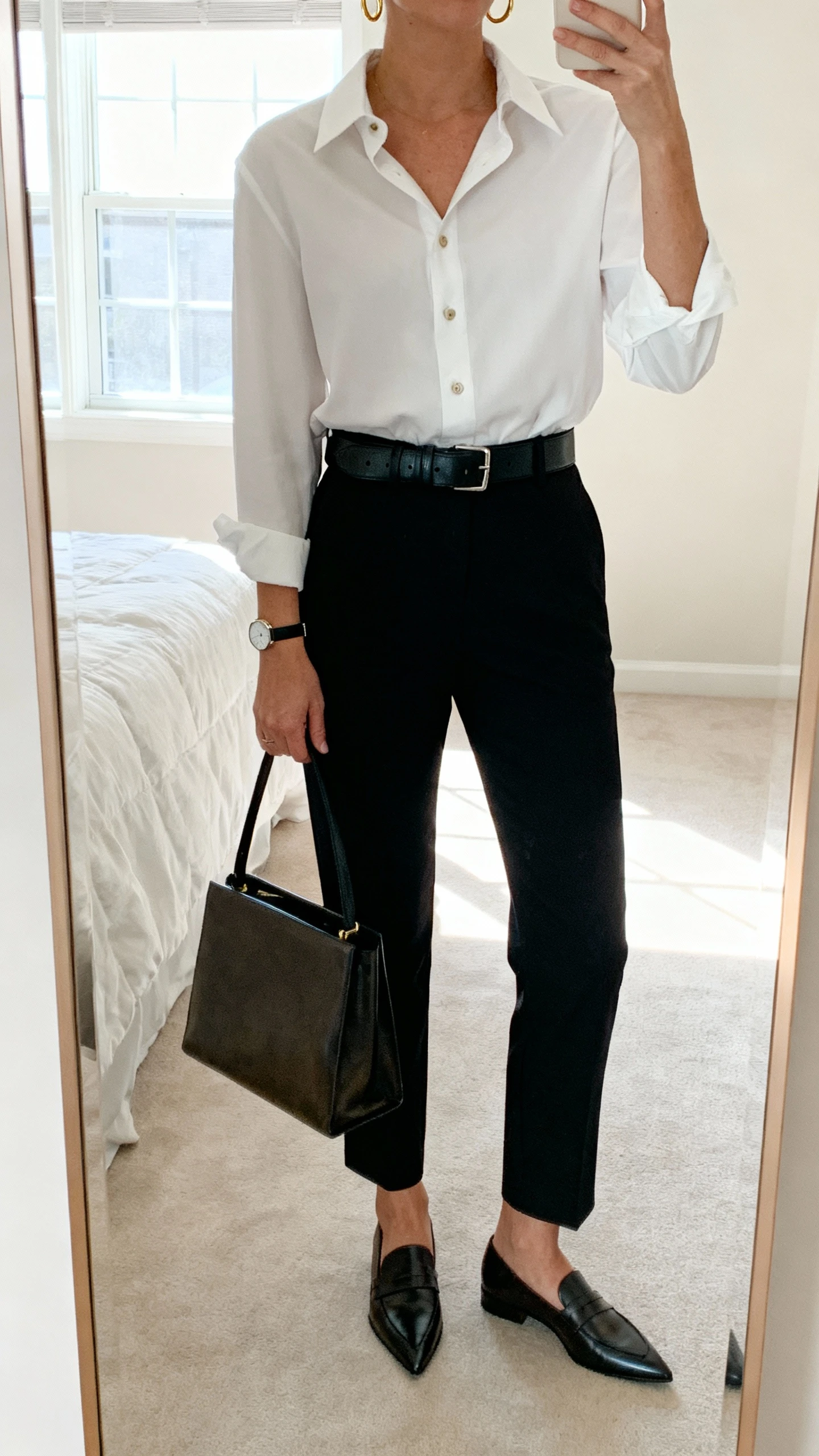 1. The Crisp White Shirt + Tailored Trousers Power Pair