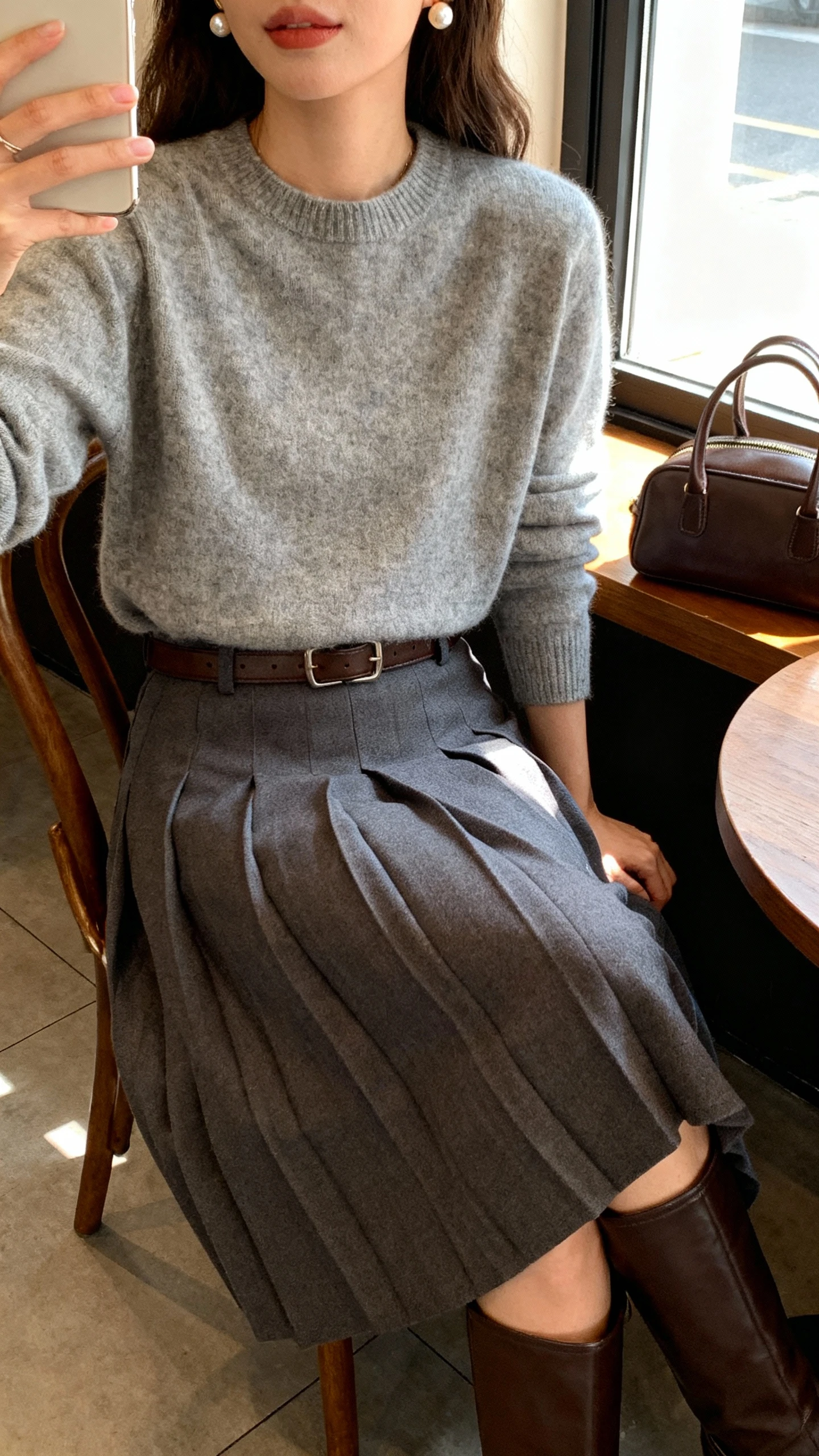This pairing is cozy luxury in motion. A plush cashmere sweater tucked into a midi skirt gives you that polished, effortless aesthetic you can wear anywhere—from the office to Sunday lunch.