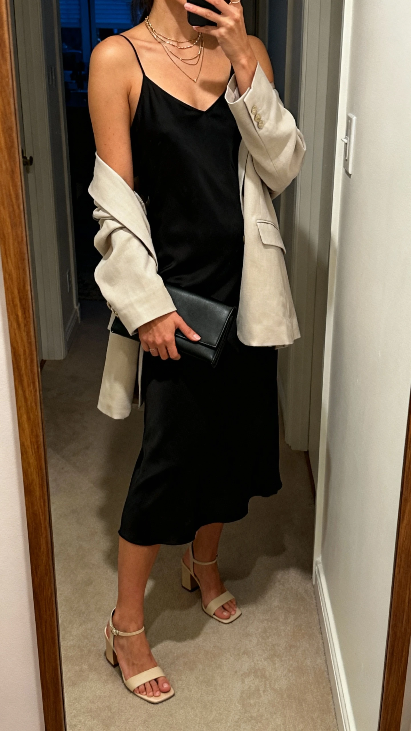 Wear it to date night or a work presentation. Try a longline blazer and loafers for “creative director” energy or go bold with metallic heels and statement earrings for parties. It’s your clean slate for endless styling.