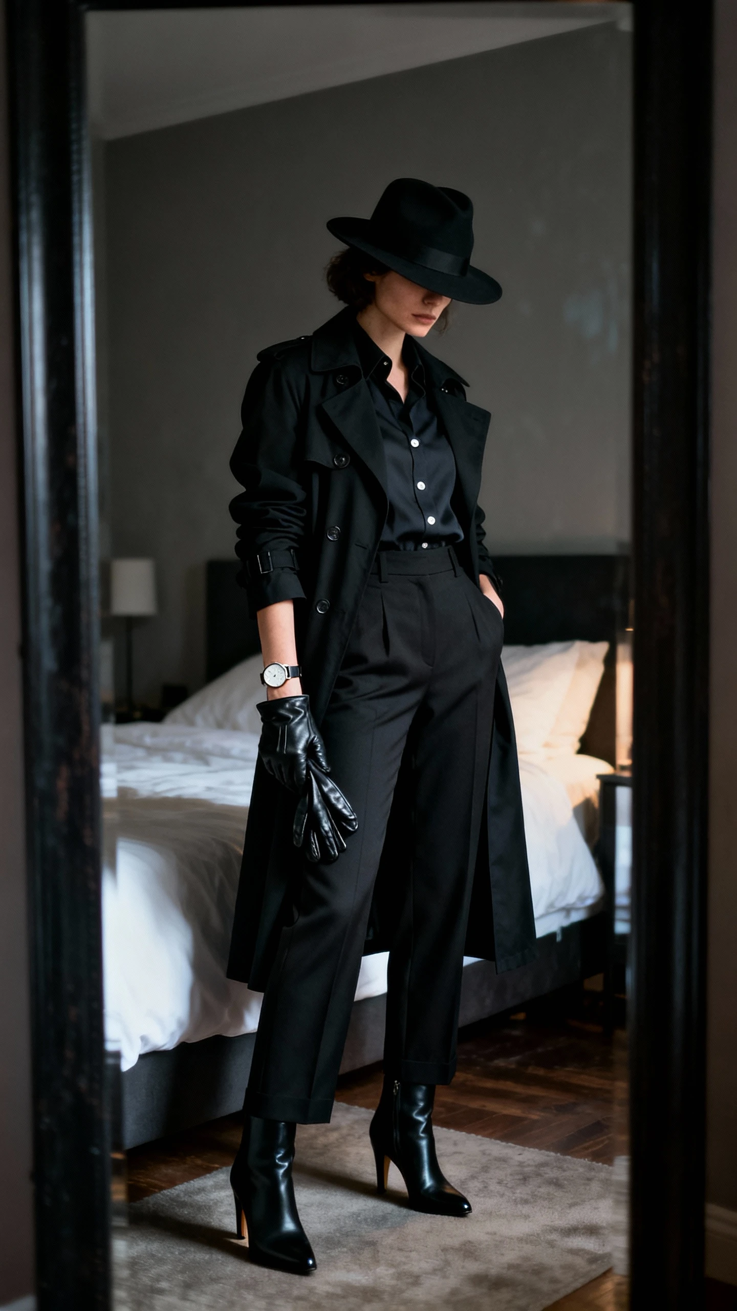 - Noir moods: grayscale, strong tailoring, leather accents.