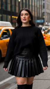 Leather pants are not just edgy—they’re flattering when styled right. Pair them with a soft knit top to balance structure and softness.