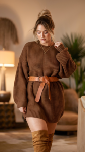 Nothing screams effortless chic like a cozy sweater dress paired with knee-high boots. I personally adore how sweater dresses hug your curves without clinging too tightly.