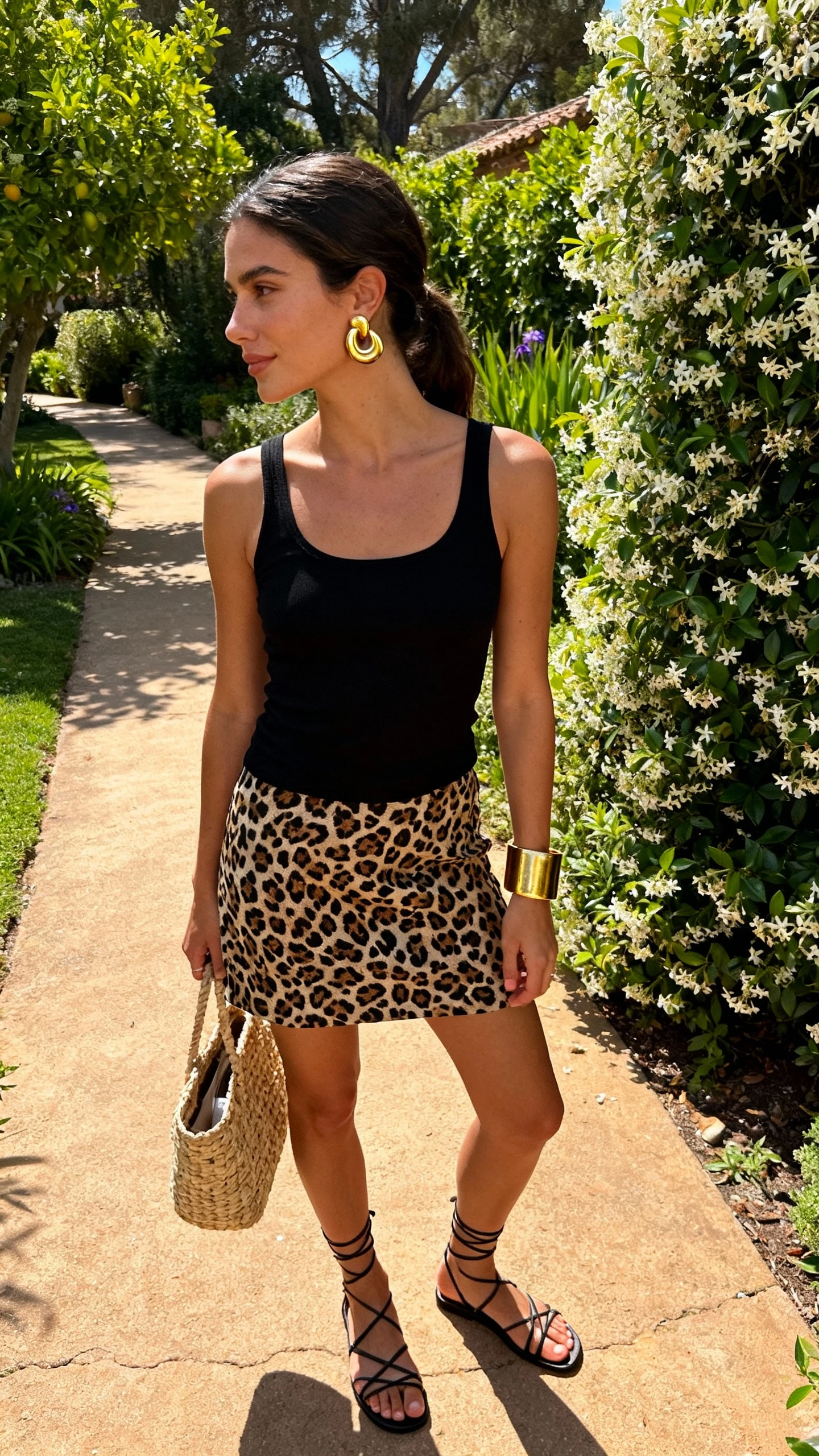All-black everything is sleek; add a leopard skirt and you’re instantly editorial. This formula is foolproof when you want max impact with minimal effort. It’s the cool-girl uniform with a hint of drama.