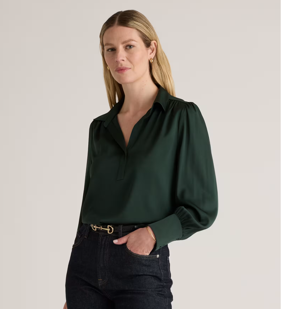 This one’s a game-changer for anyone who wants to look “expensive” at work or on Zoom. The Silk blouse gives major “CEO on her way to lunch at Nobu” energy.