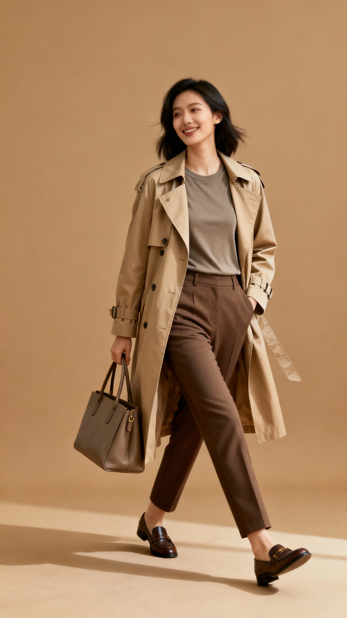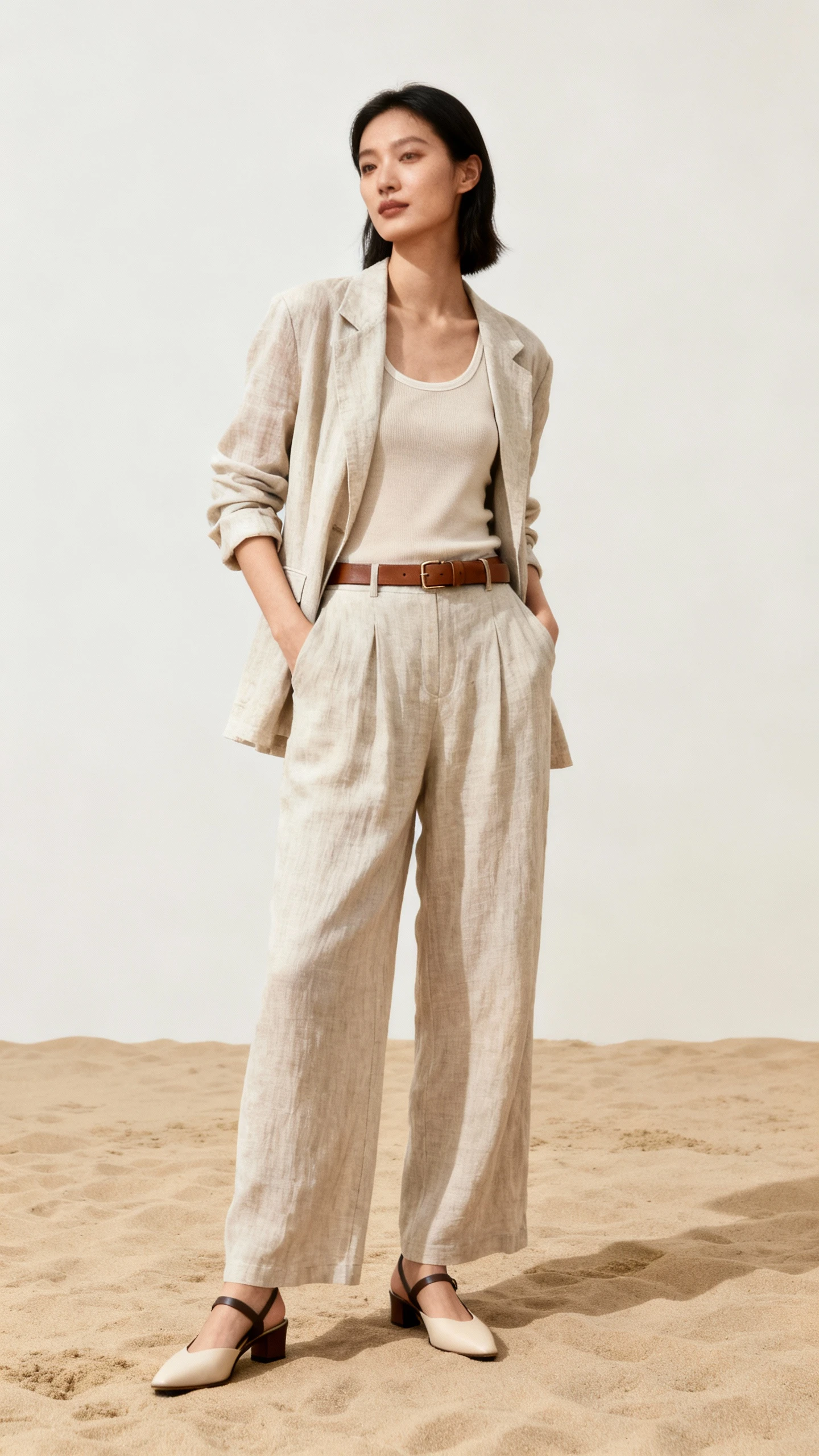 Rotate through a few hero pieces—like a great blazer, slingbacks, a trench, and tailored trousers—and mix them with seasonal colors. Choose breathable fabrics (cotton poplin, linen blends, lightweight wool) so you feel as good as you look. And finish with something intentional: a belt, a sleek watch, or a subtle lip color.