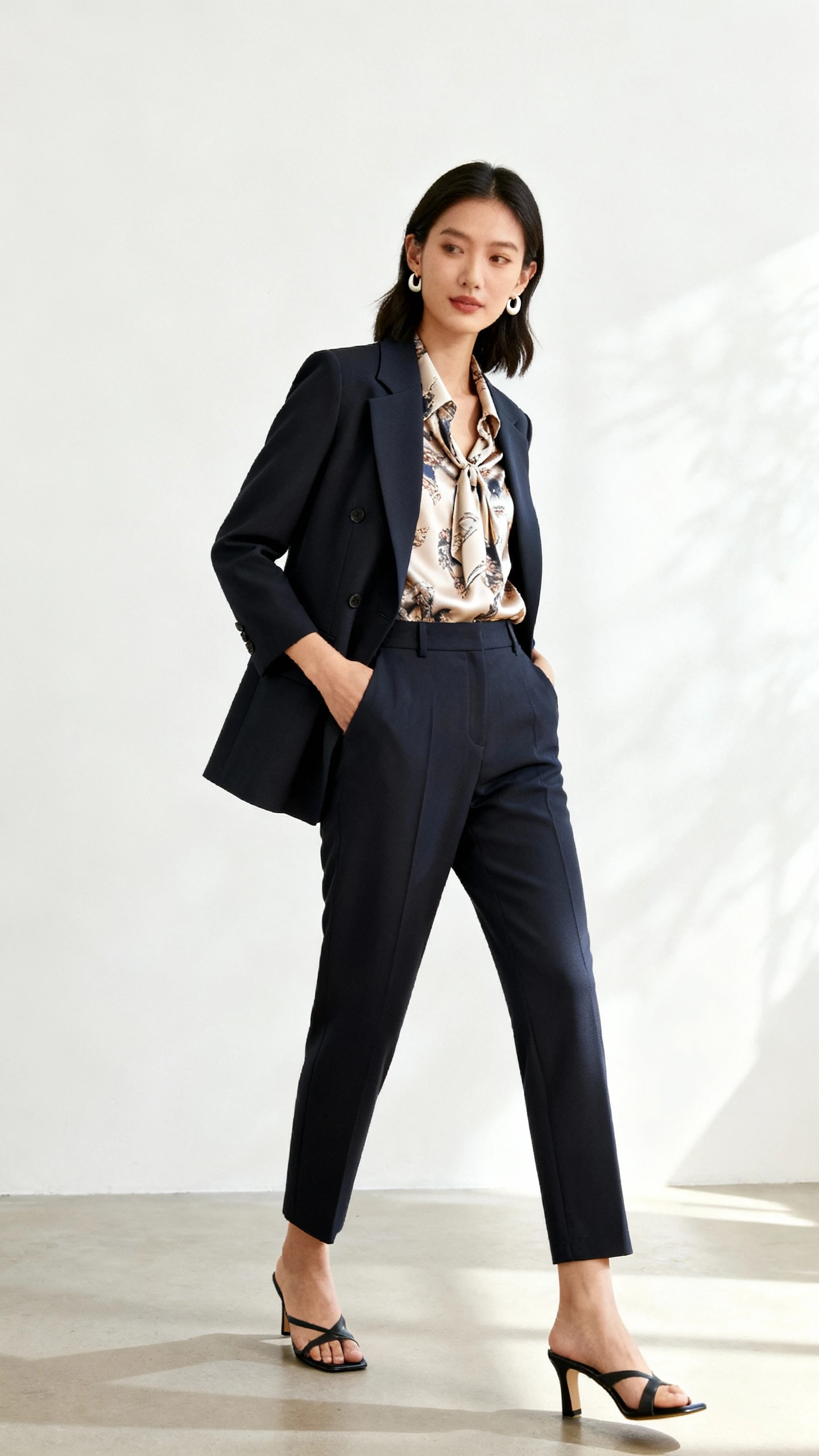 Prints are your secret weapon against boring office outfits. Pair a patterned blouse with precise tailoring and you’ve got personality that still reads professional. The trick is balancing one bold piece with sleek staples.