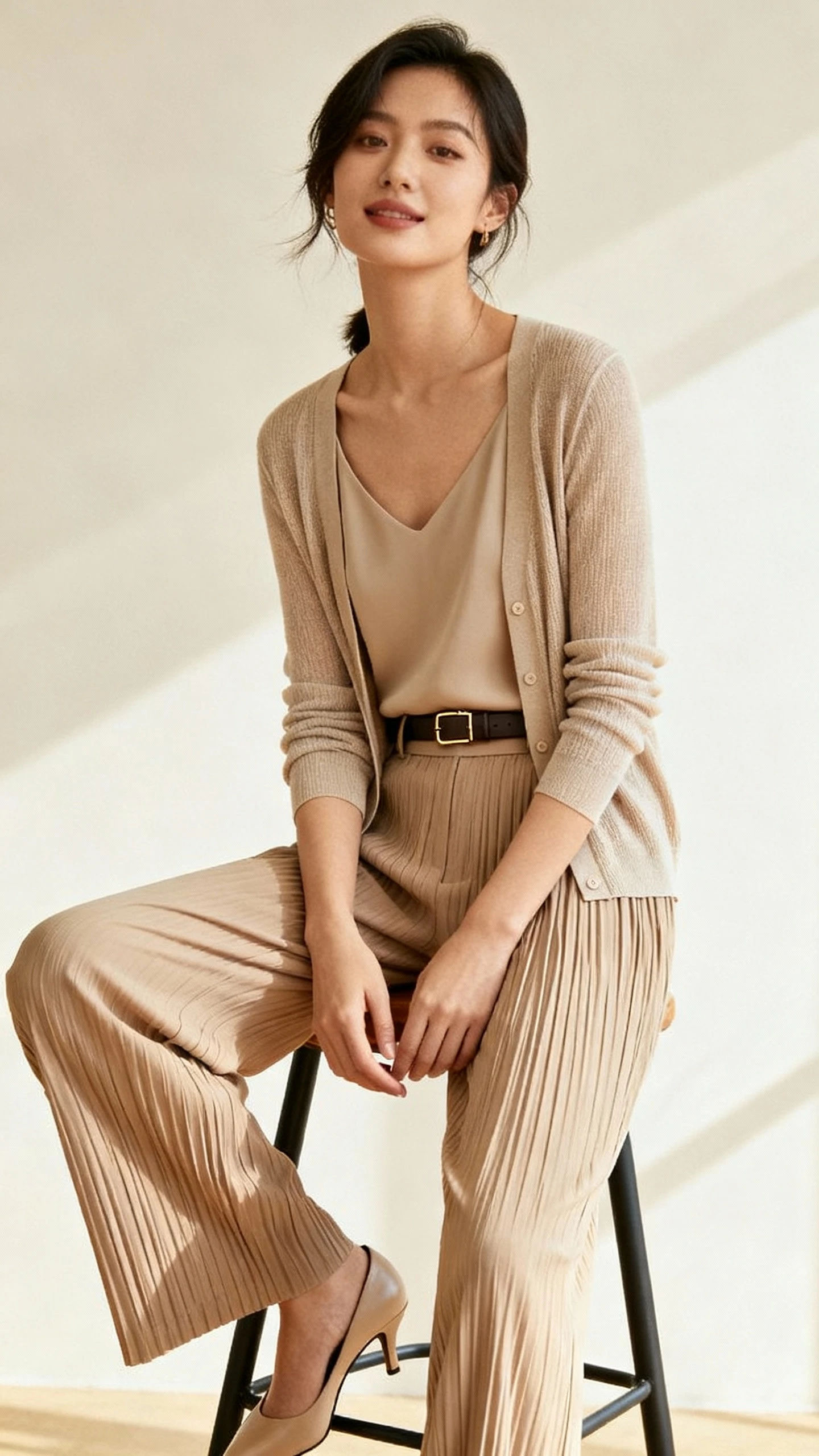 9. The Pleated Trousers + Lightweight Cardigan Set