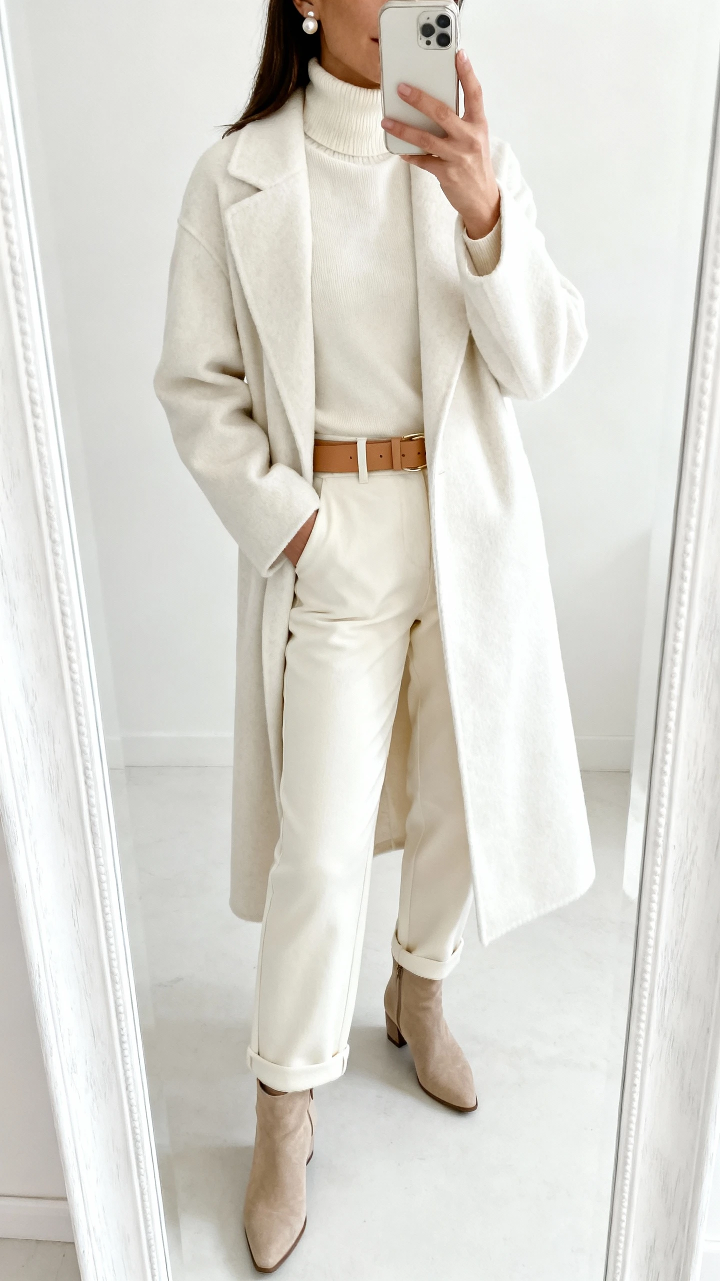 • Mix textures—ribbed knits, soft wool, suede—to keep monochrome from feeling flat.