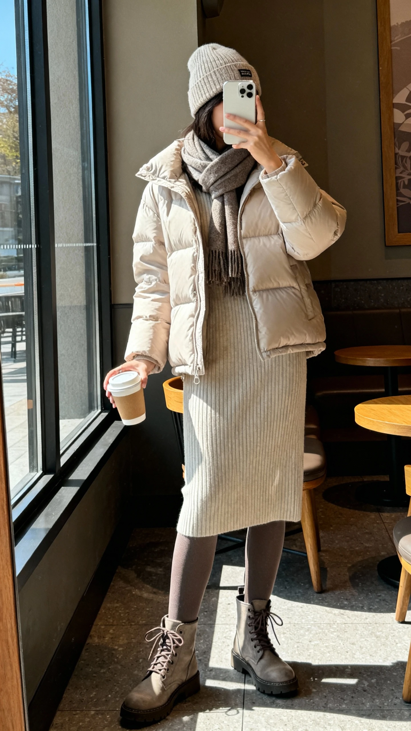 3. Chic Puffer + Knit Dress That Feels Like A Warm Hug