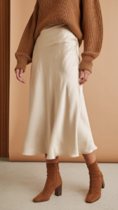 3. Satin Skirt + Chunky Knit Sweater + Heeled Booties
