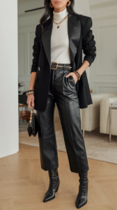 2. Oversized Blazer + Turtleneck + Leather Pants