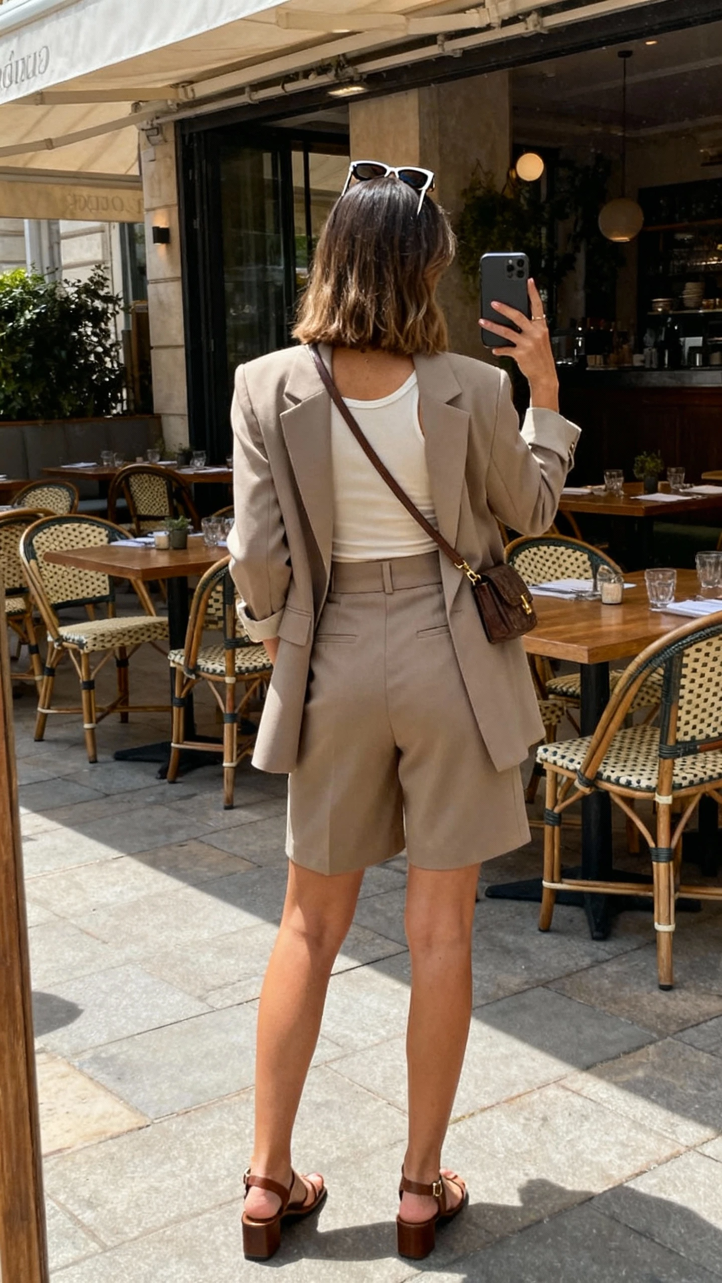 4. The Tailored Shorts + Blazer Set That Owns Patio Seating
