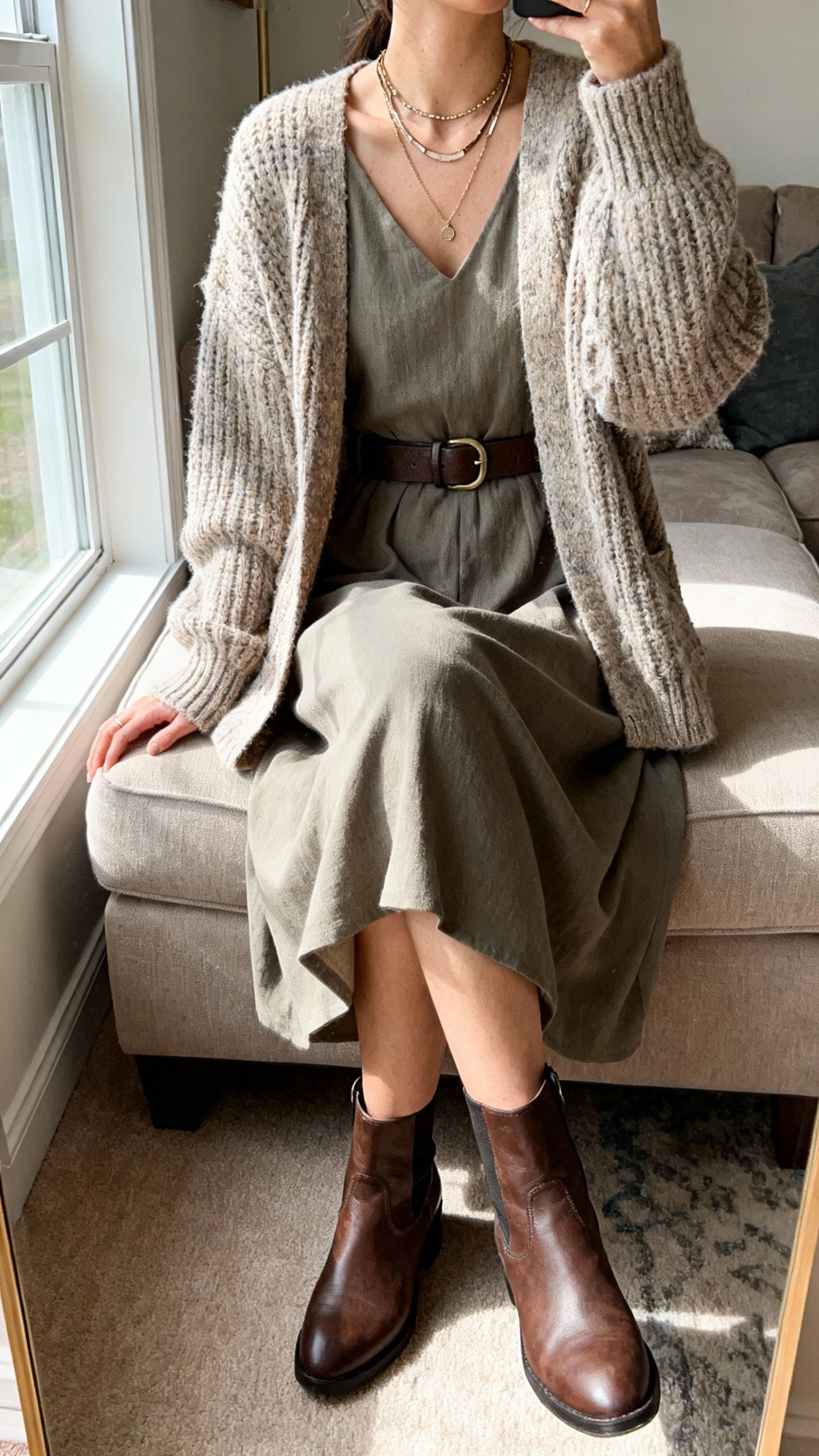 Layering a sweater over a dress turns one-piece ease into a styled moment. It’s cozy, flattering, and works across seasons. Bonus: it breathes new life into dresses you’ve worn a dozen times.