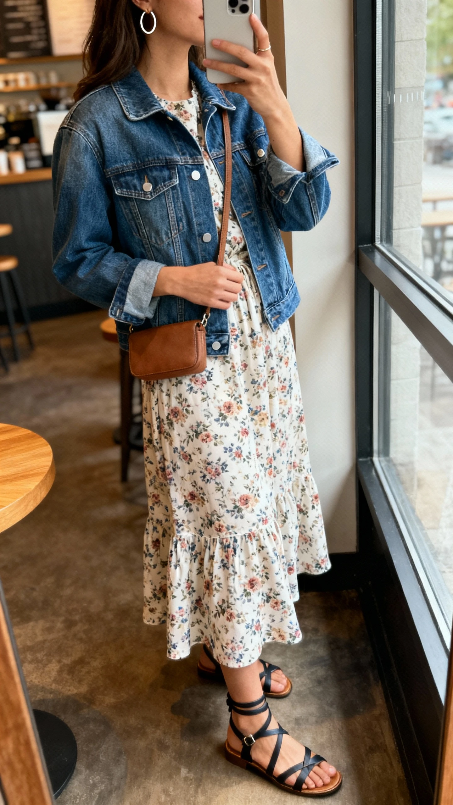 11. The Denim Jacket Over Florals That Nails Casual-Pretty