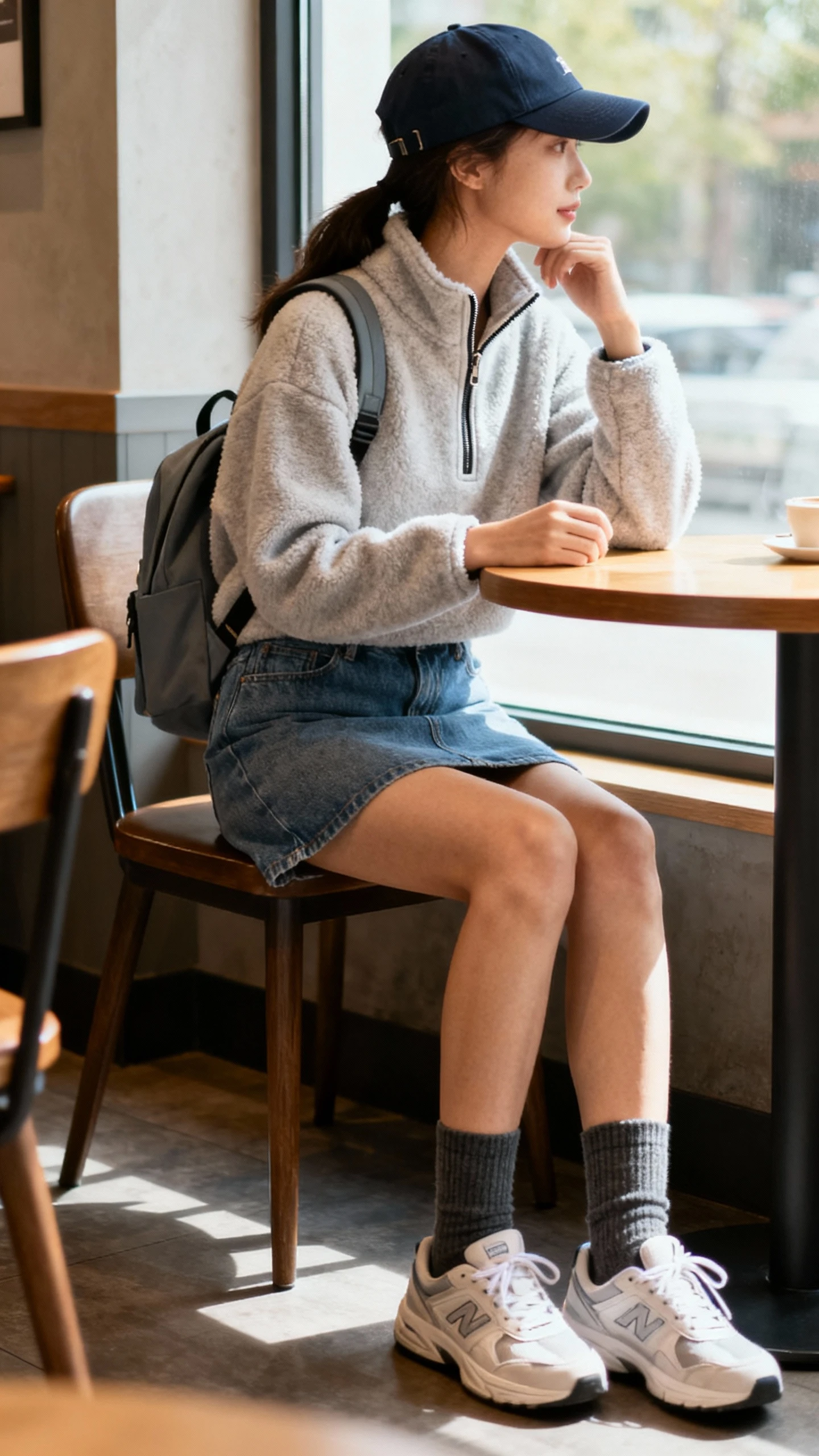 When comfort is king but you still want to look cute, this combo brings it. A half-zip fleece with a denim mini and sleek sneakers feels fresh and playful. It’s practical for everyday life and still very Instagram-story-ready.