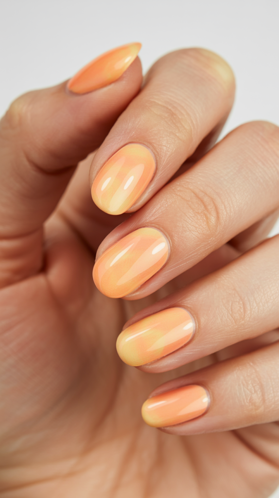 Peach sorbet nails are cheerful but refined — not too orange, not too pink. Just that perfect “warm glow” that flatters every outfit.
