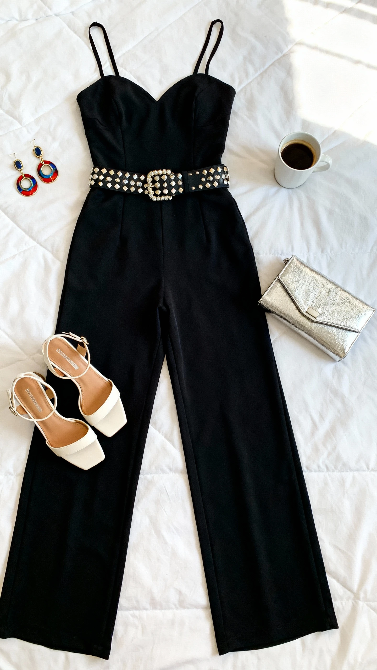 - Statement belt—metallic or jewel buckle