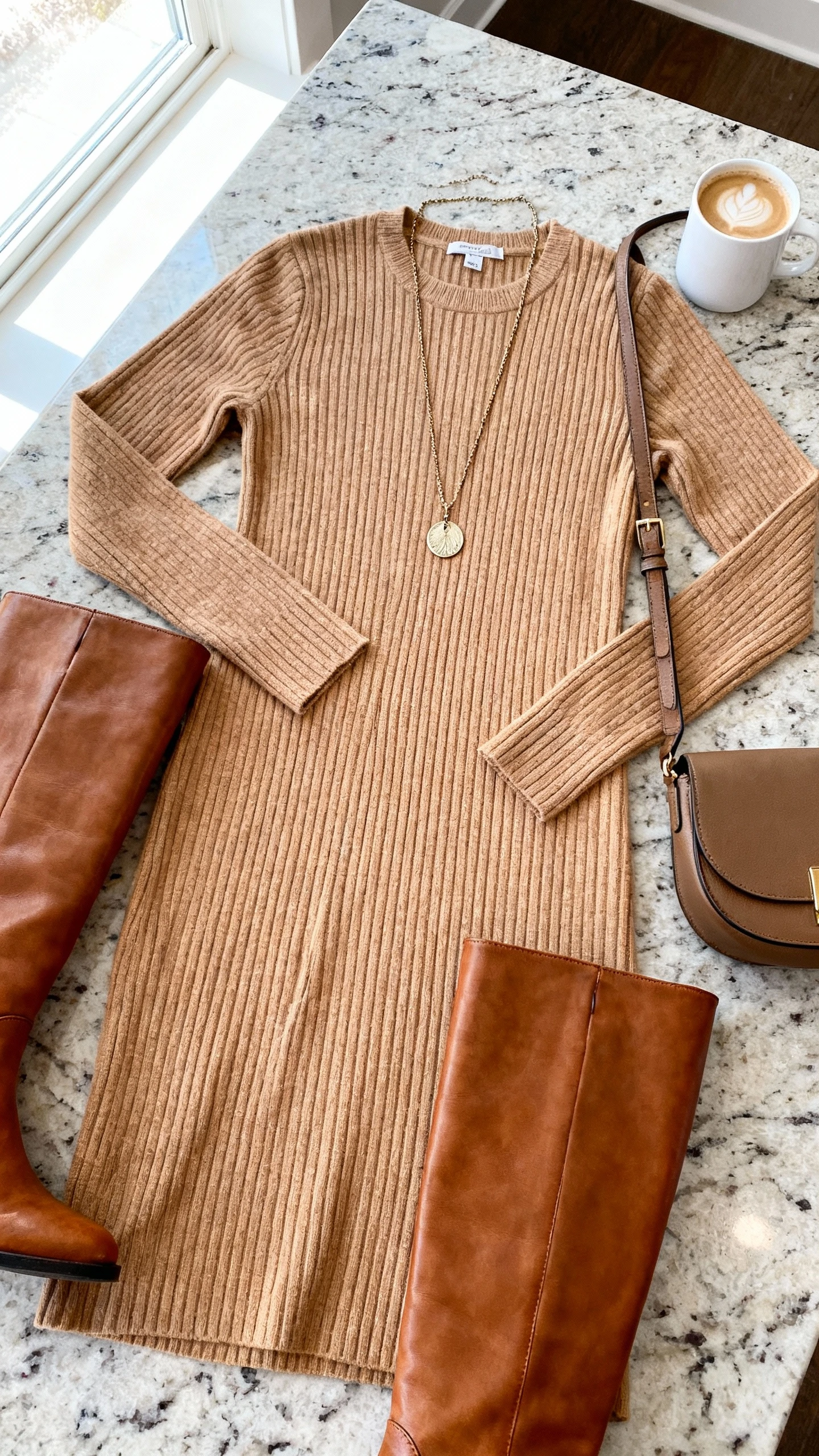 9. Cozy Ribbed Midi Dress With Knee-High Boots