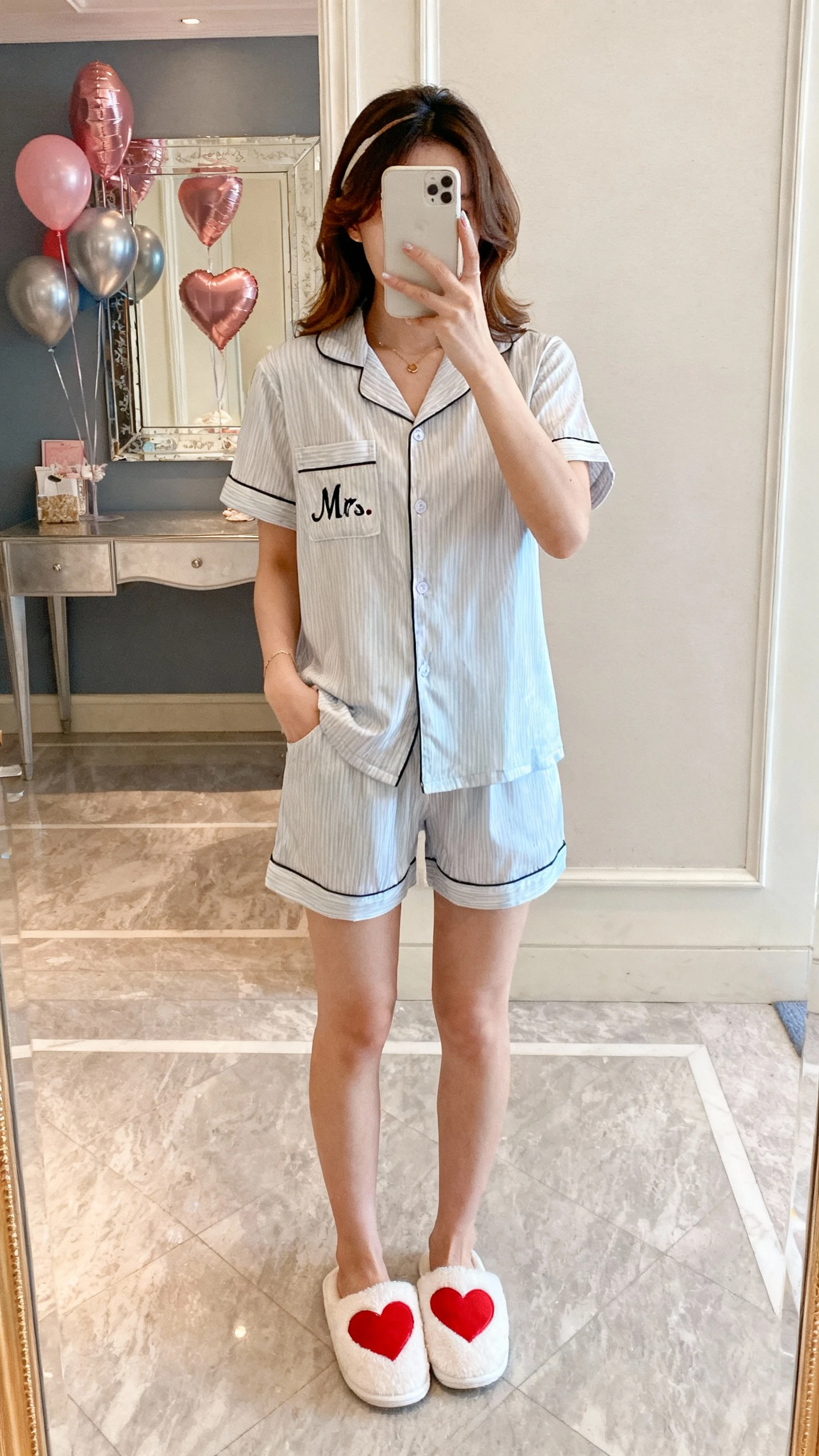- Short-sleeve pajama top with “Mrs.” embroidery or monogram