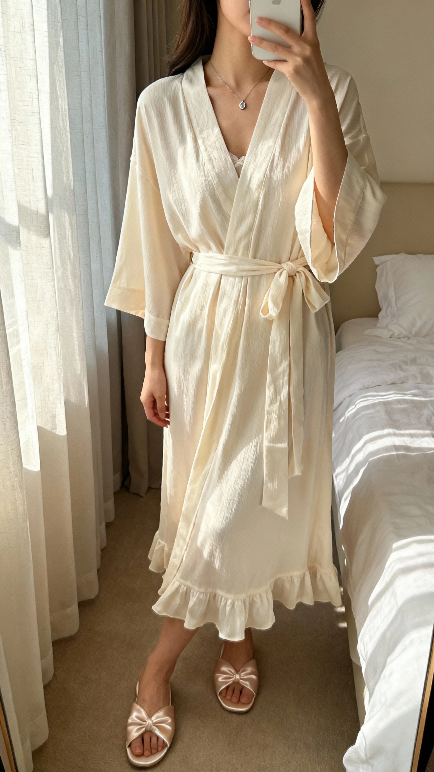 - Match robe length to the slip to keep lines clean in photos.