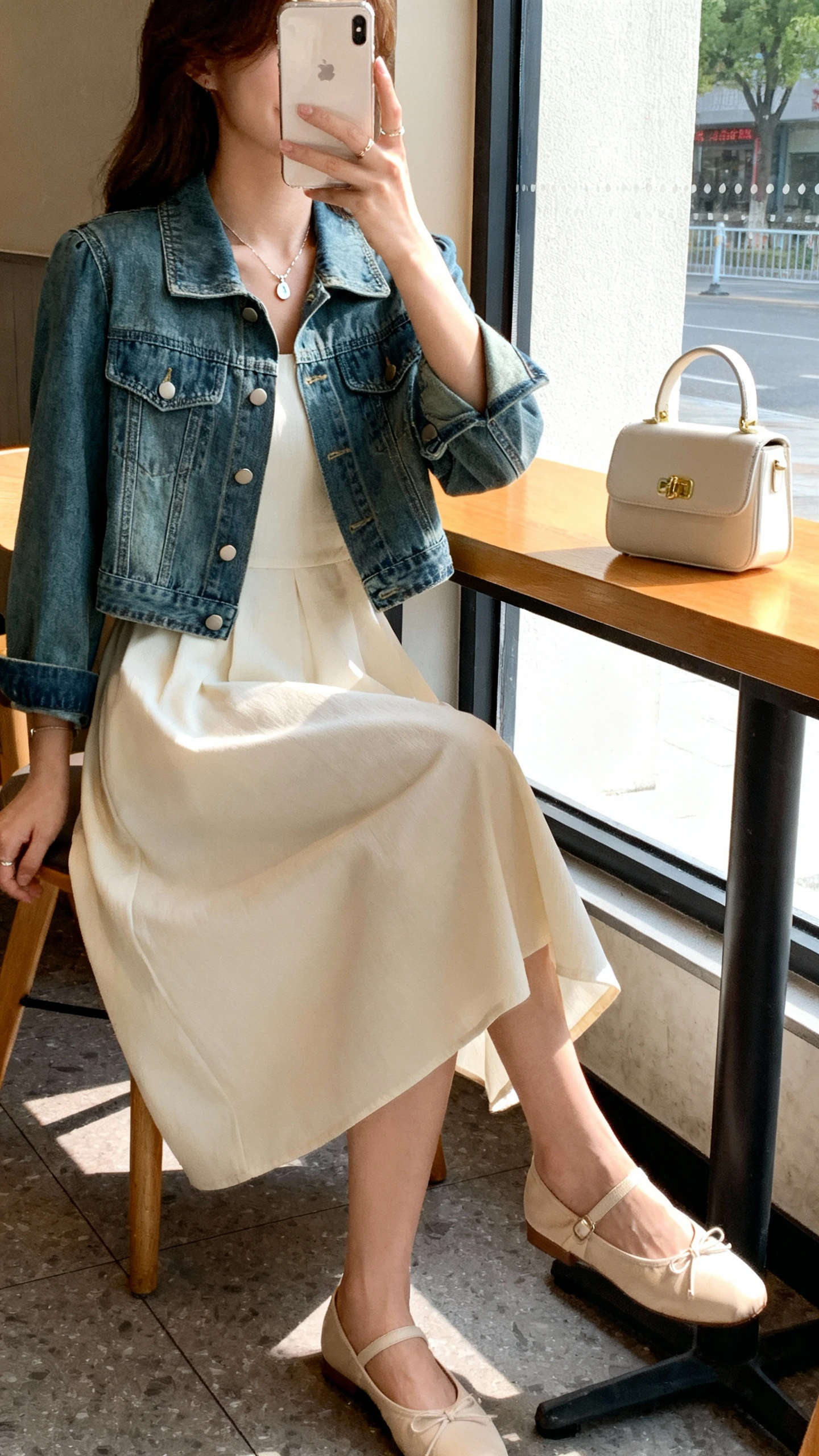 9. Denim Daydream: Cropped Jacket + Soft A-Line Dress