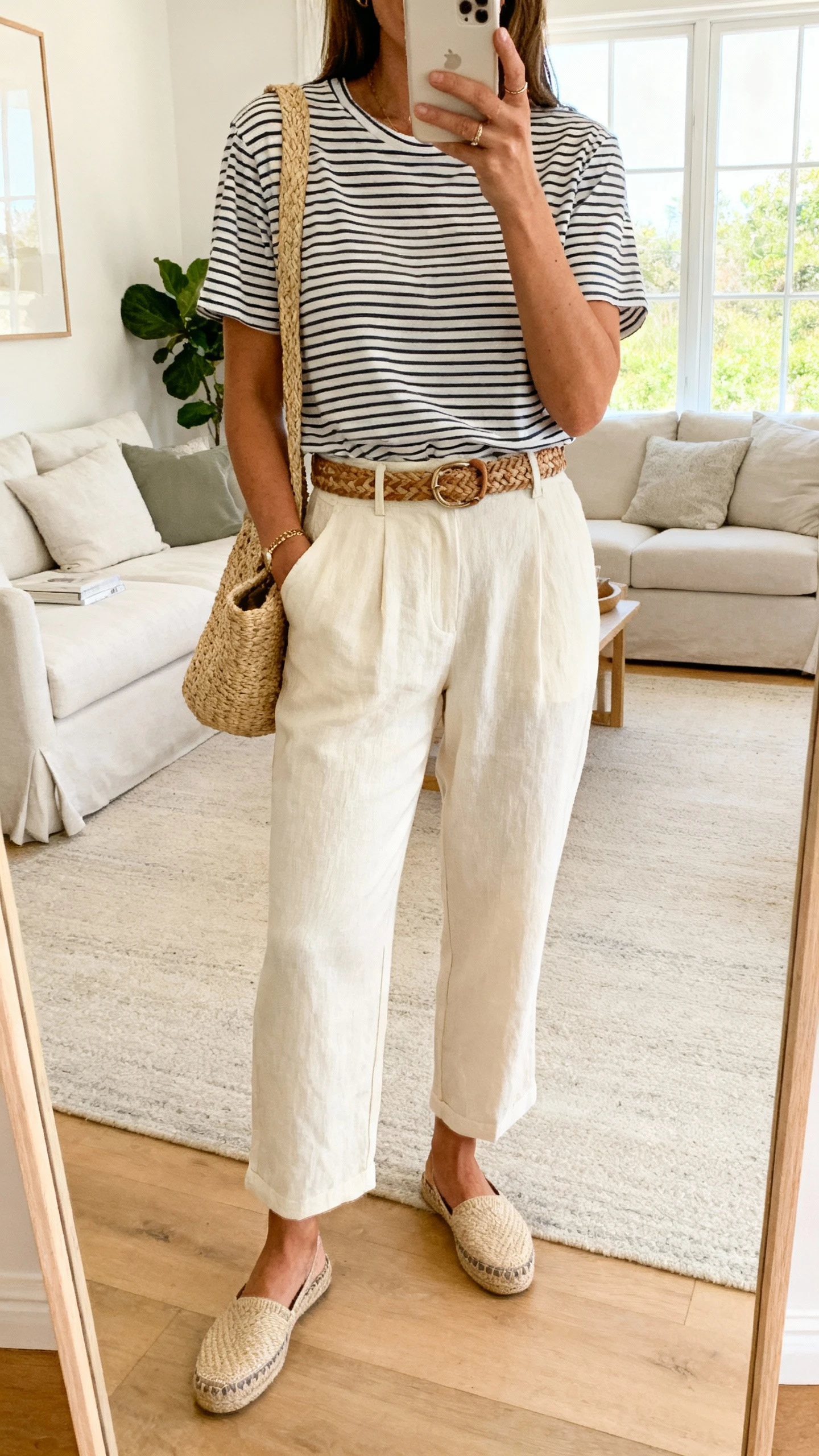 7. Coastal-Cool: Striped Tee + Linen Pull-On Pants