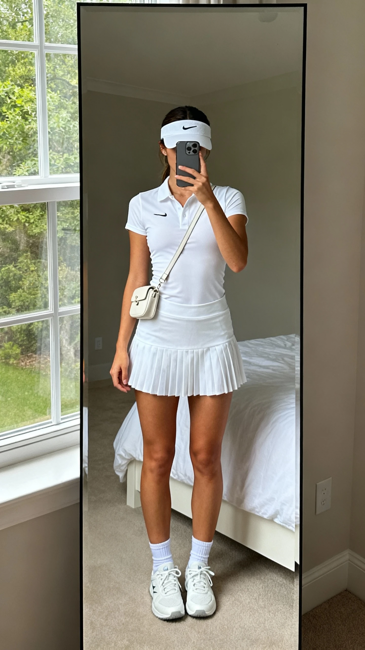 - Preppy: Polo + Pleated Skort + Clean Sneakers + Mini Shoulder Bag