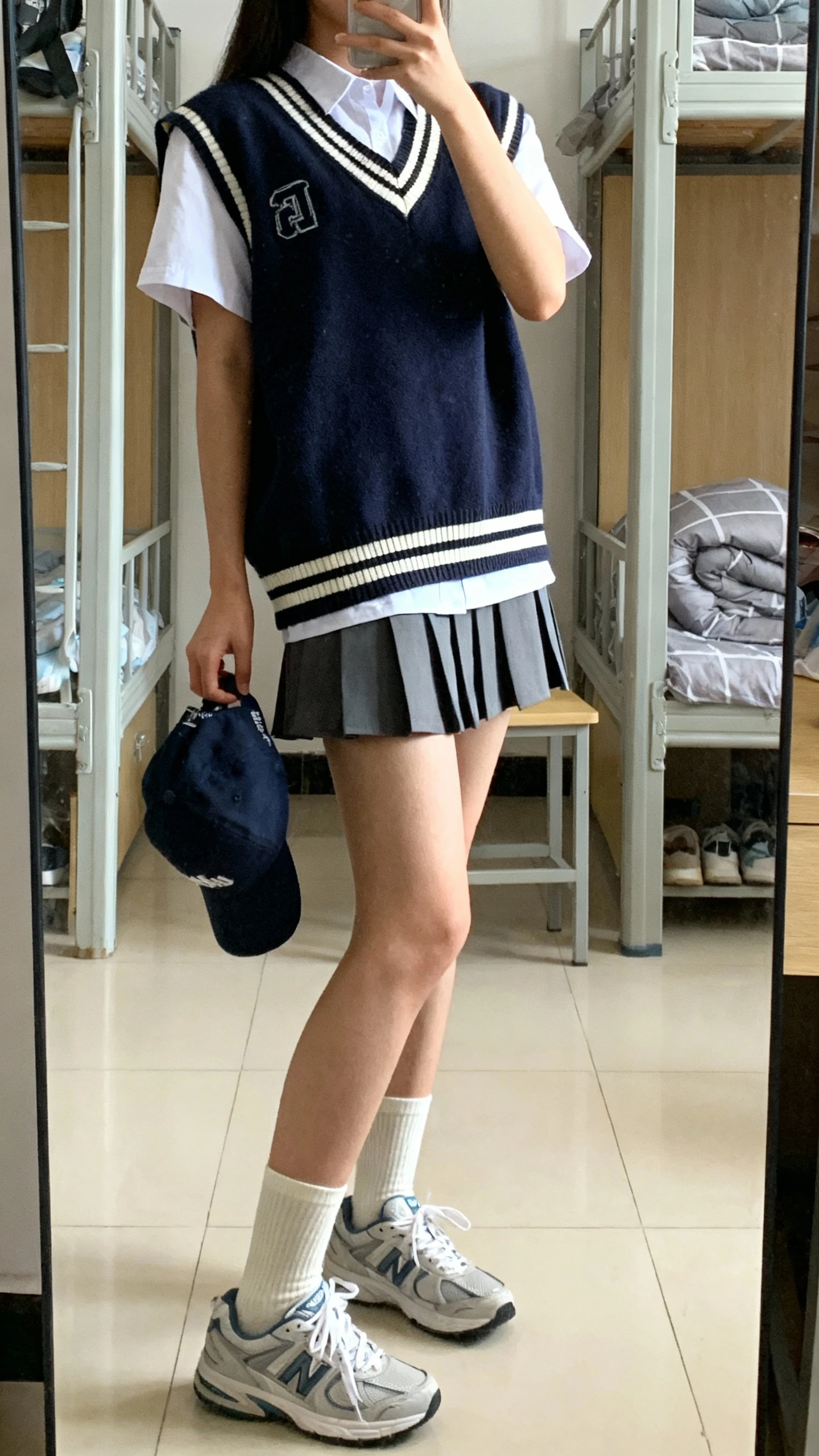 4. Retro Varsity Vibes: Knit Vest + Pleated Mini