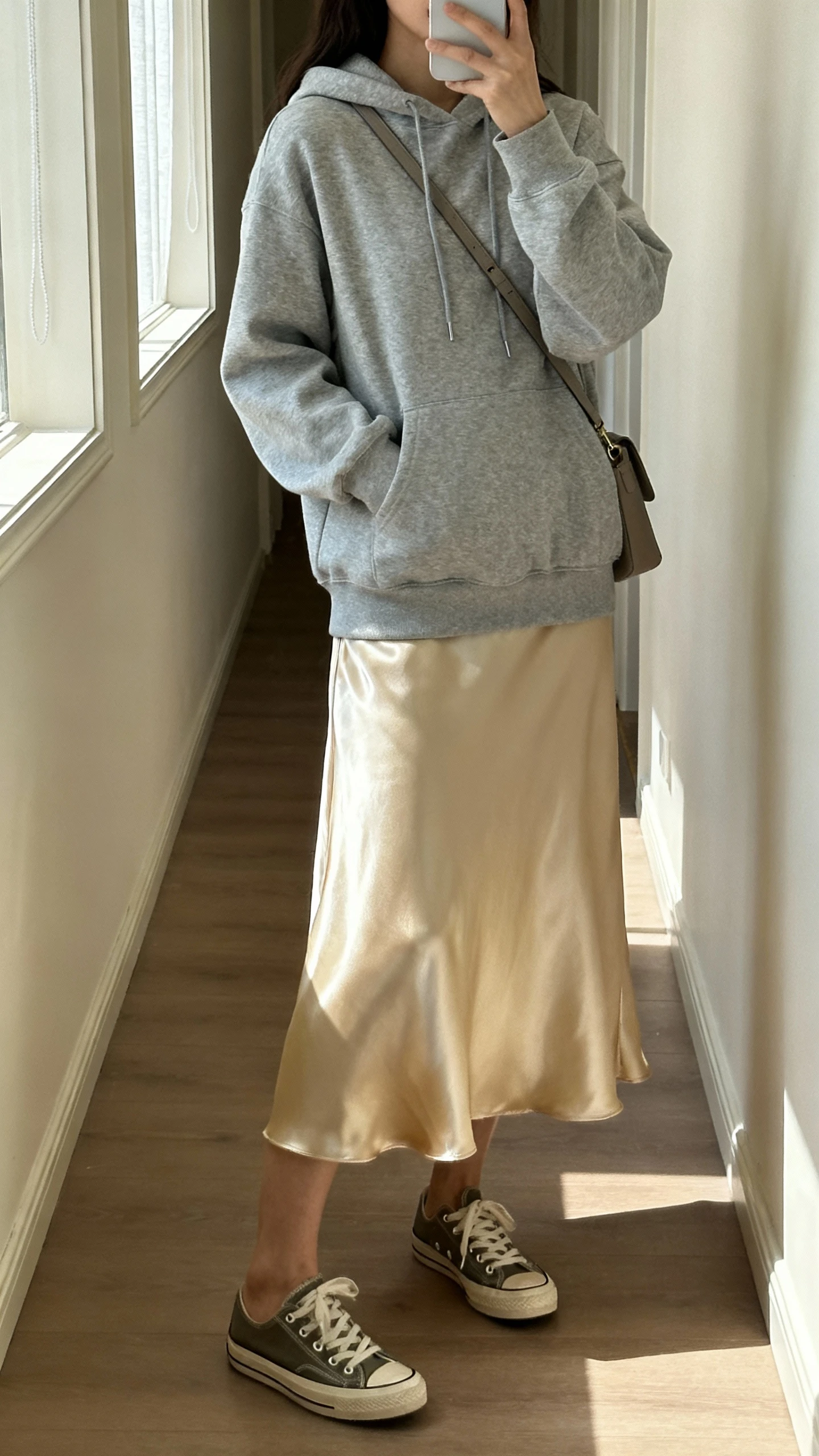 11. Cozy-Cool: Hoodie + Slip Skirt Balance