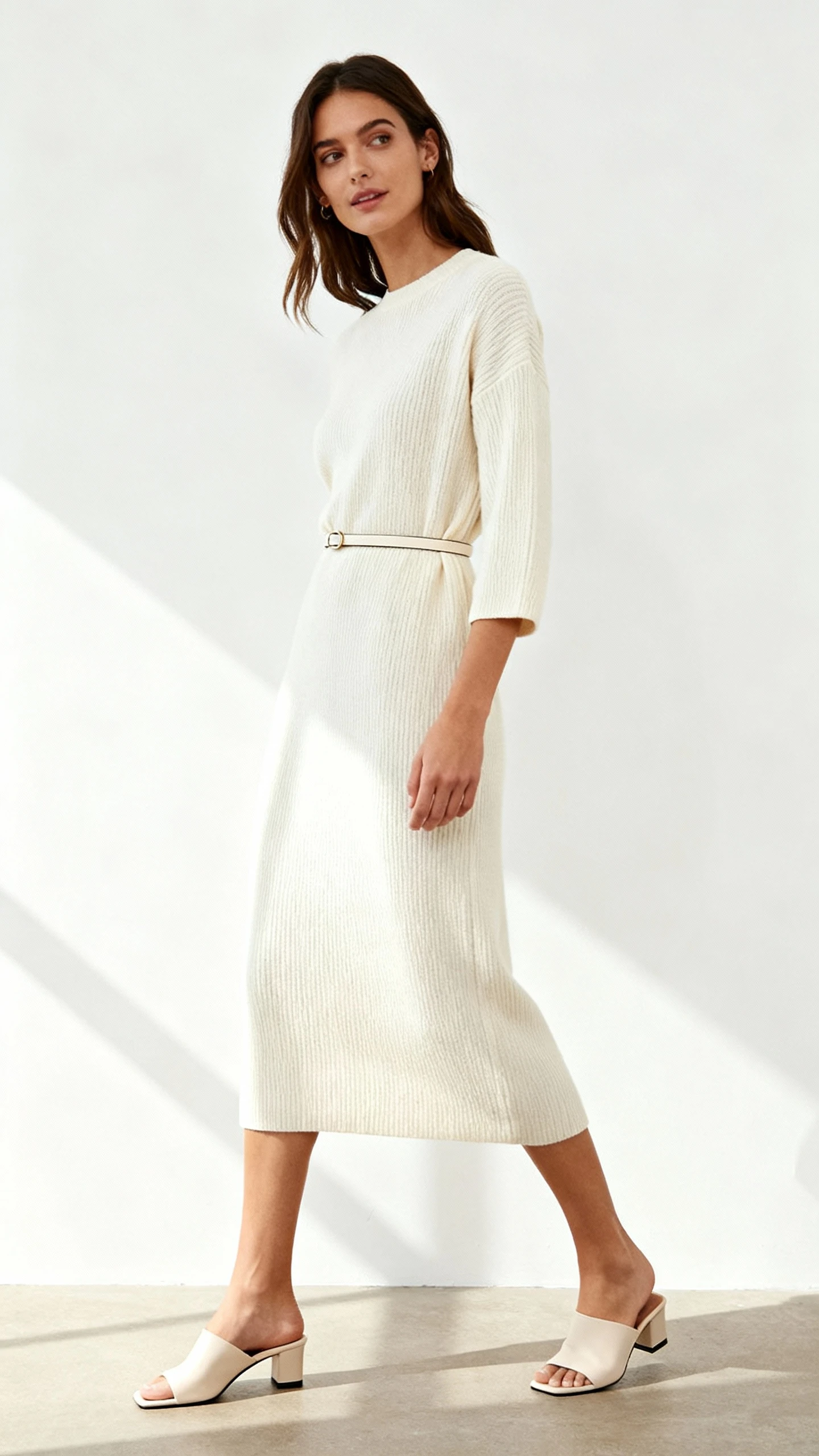 4. Minimalist Knit Dress With Belted Elegance (A One-And-Done Hero)