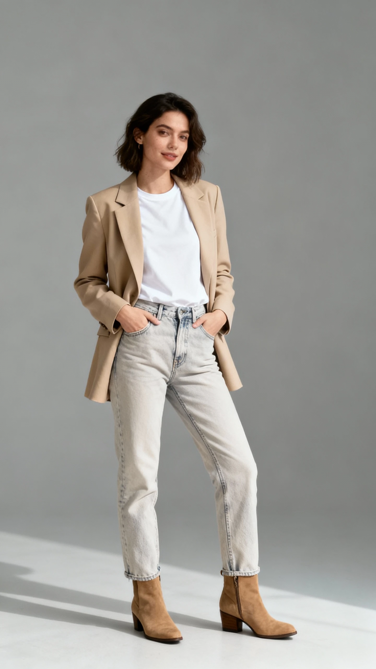 3. Beige Blazer And Relaxed Jeans That Look Like Off-Duty Model Energy