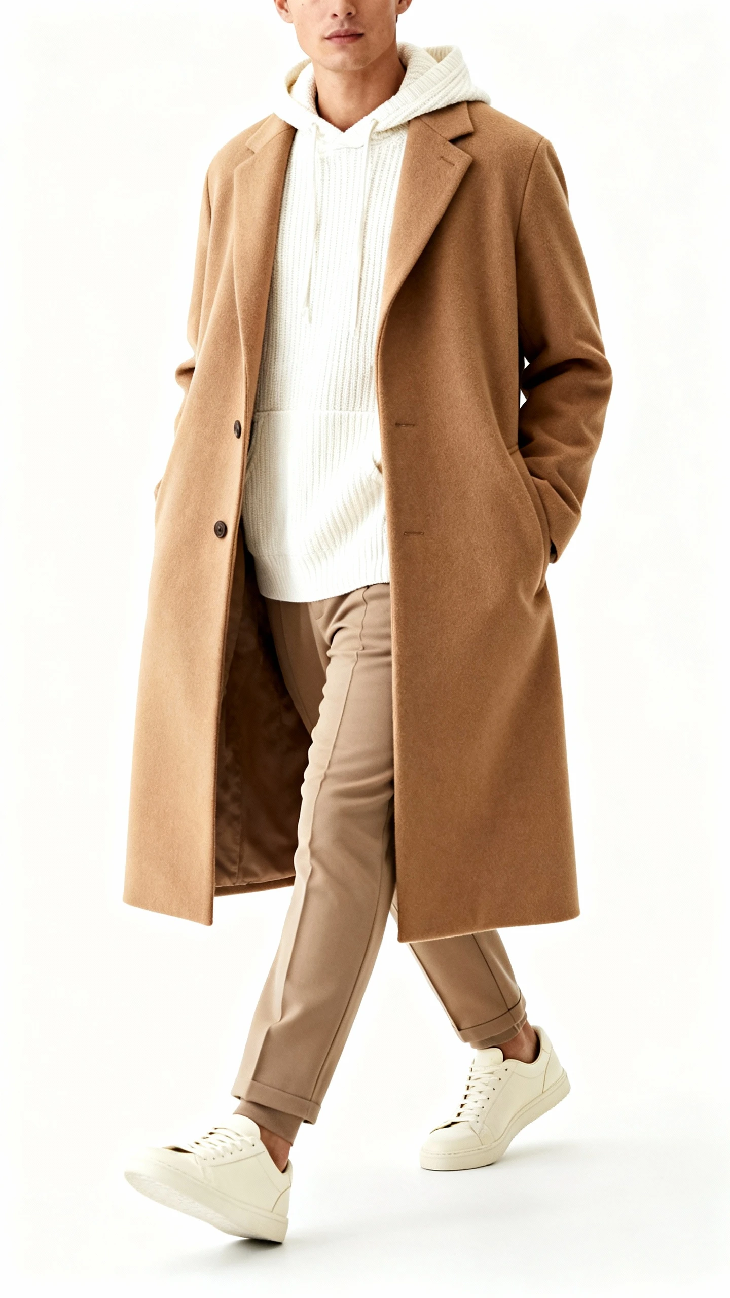 A cozy hoodie under a tailored coat is that sweet spot between sporty and sophisticated. All in beige tones, it looks curated instead of “I just left the gym.” Bonus: it’s insanely comfortable without reading too casual.